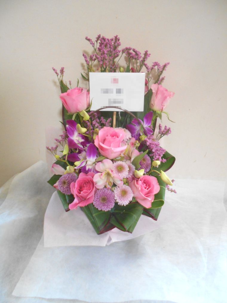 この写真は、実際にお届けさせていただいたアレンジメントです