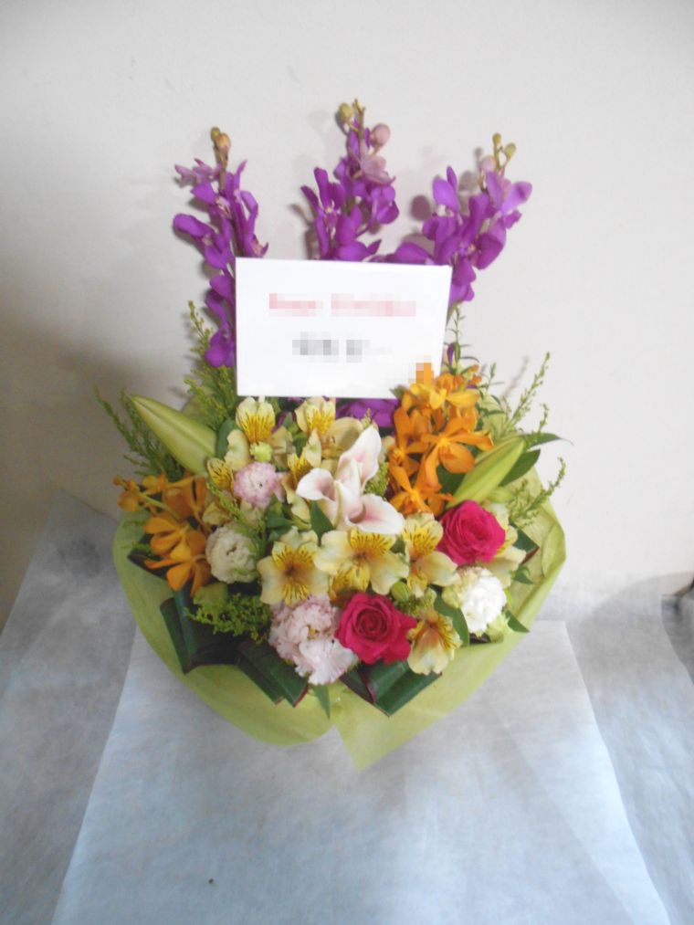 アレンジメントの実際にお届けした写真です。花秘書では発送前に写真をメールで送信致しますので安心して大切な顧客や取引様へのギフトにご利用頂けます。