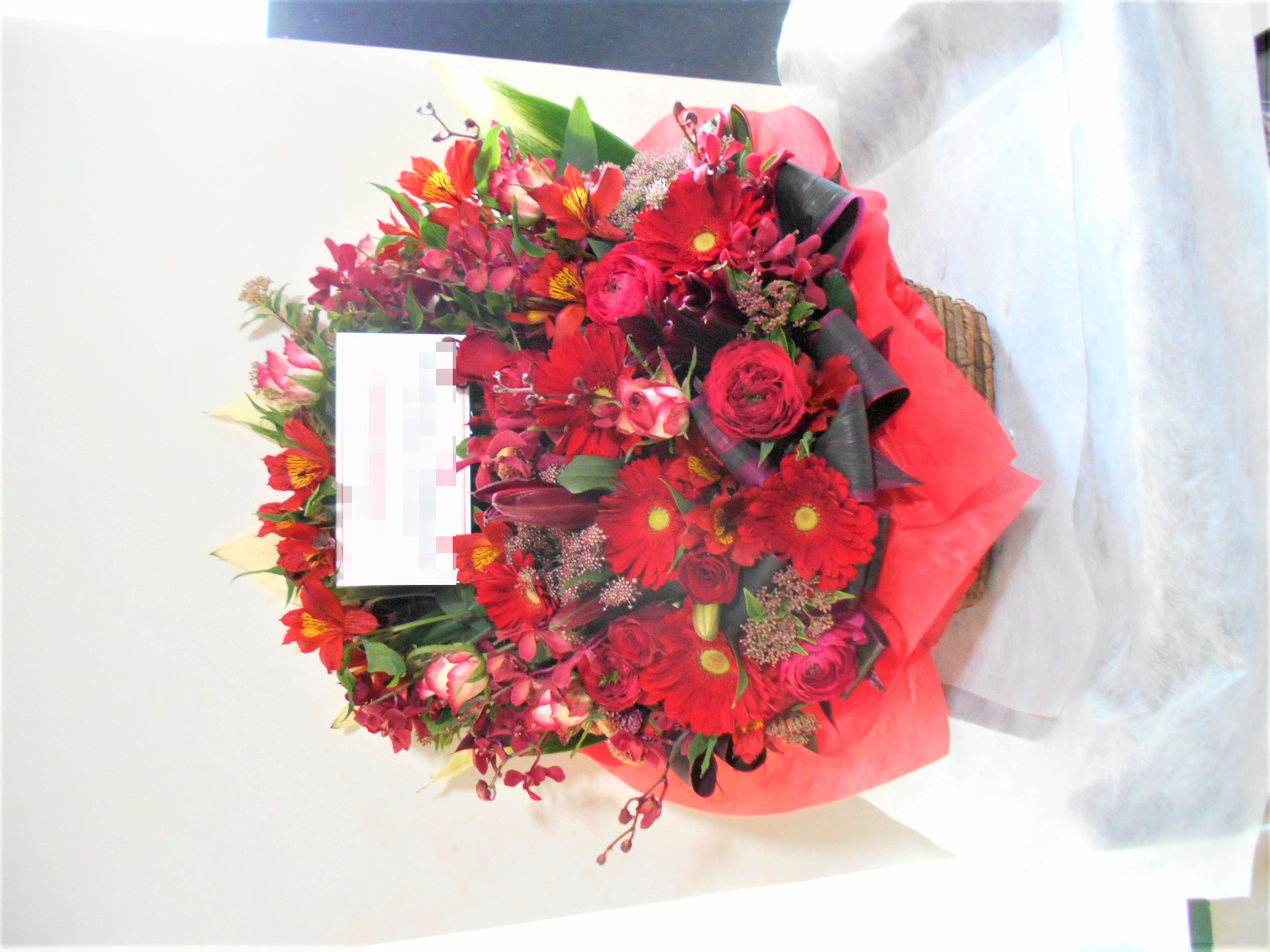 アレンジメントの実際にお届けした写真です。花秘書では発送前に写真をメールで送信致しますので安心して大切な顧客や取引様へのギフトにご利用頂けます。