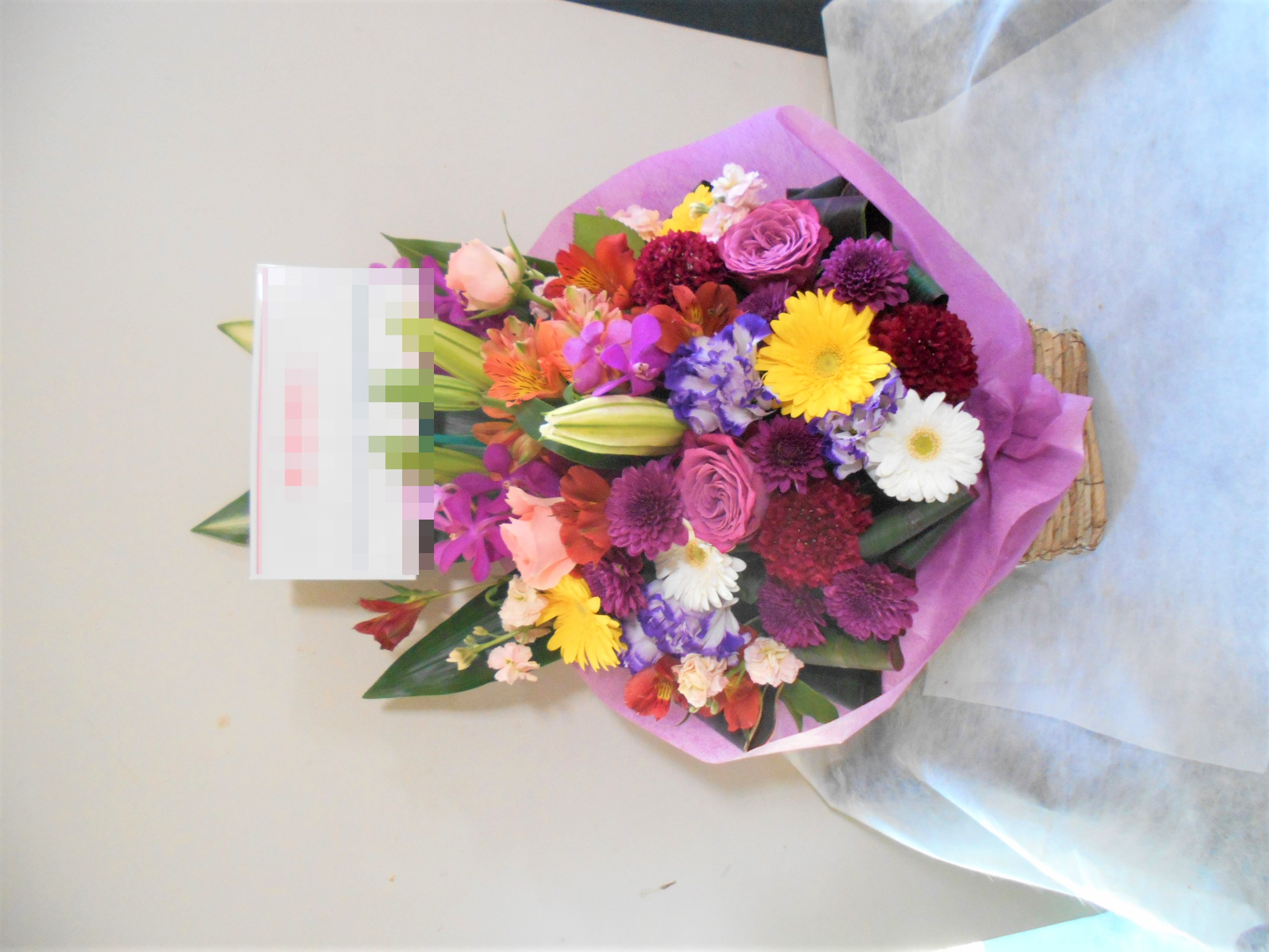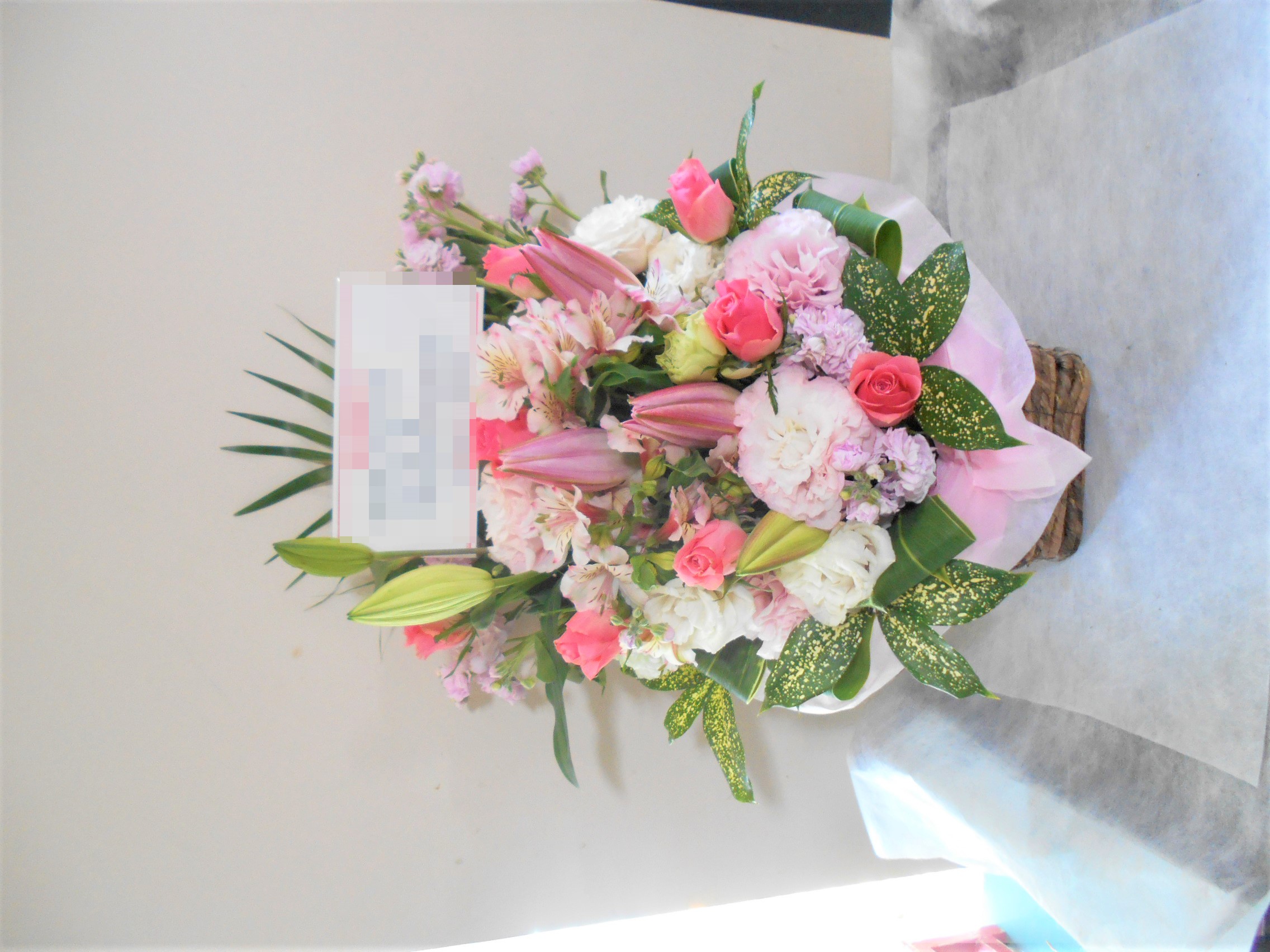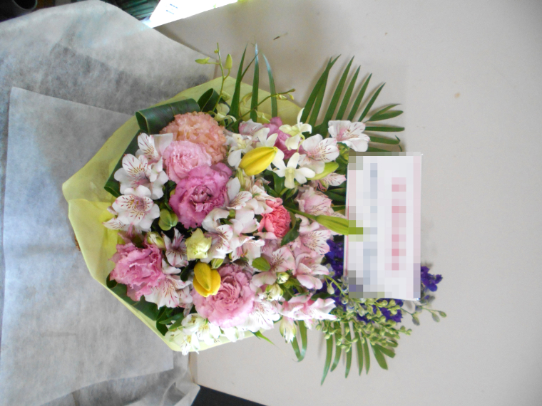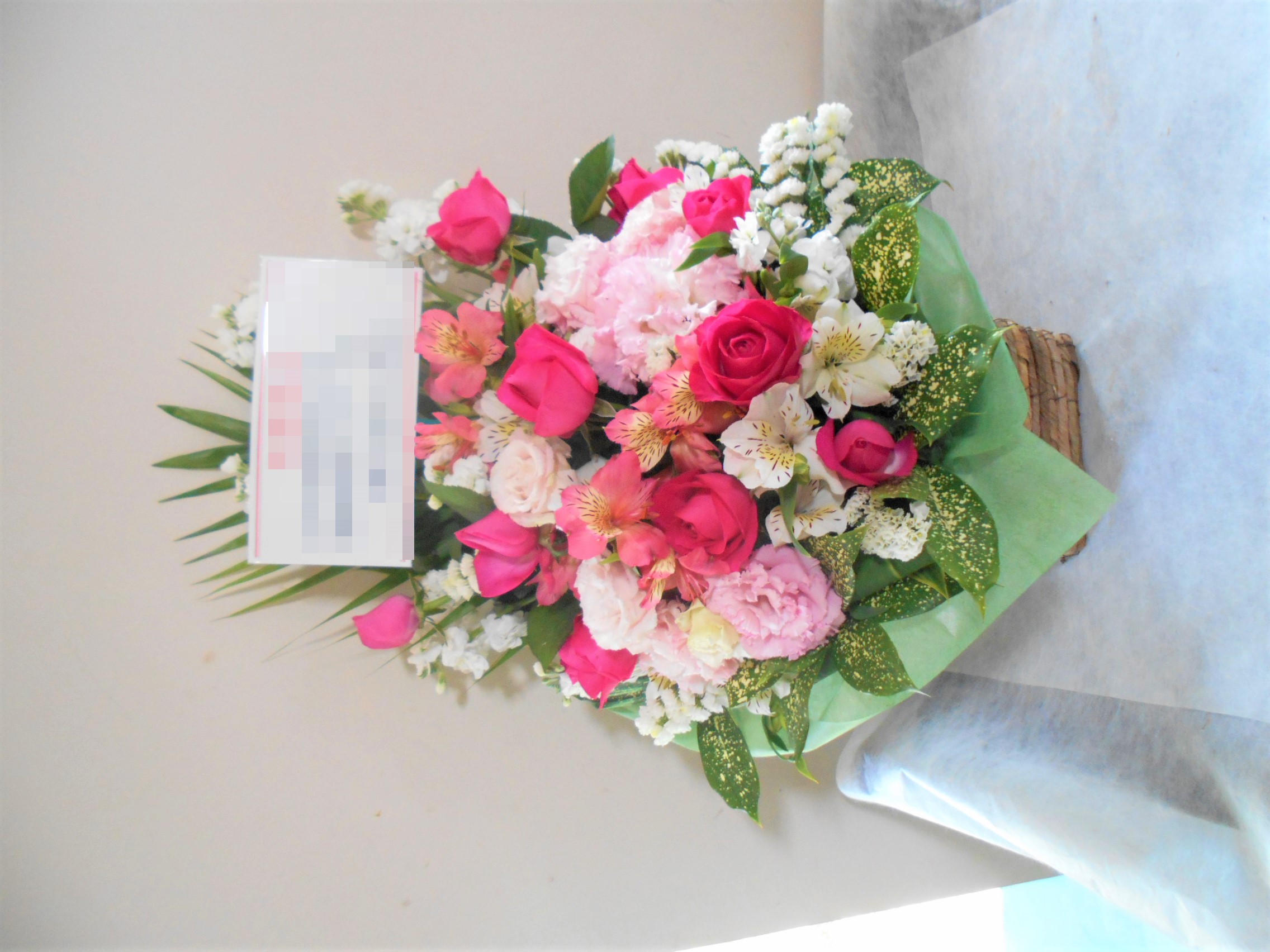 この写真は、実際にお届けさせていただいたアレンジメントです