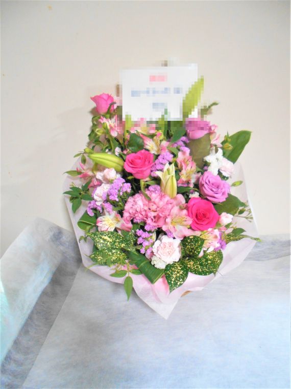 この写真は、実際にお届けさせていただいたアレンジメントです