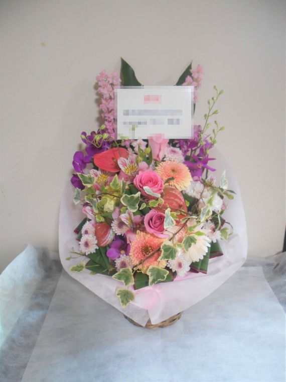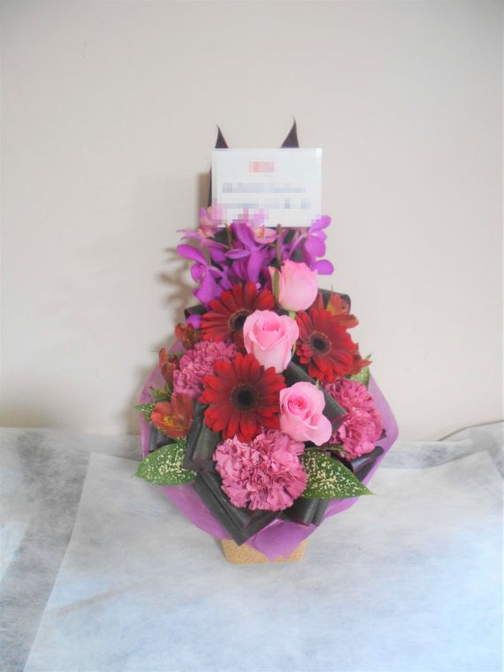 この写真は、実際にお届けさせていただいたアレンジメントです