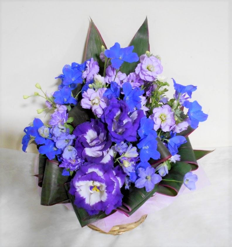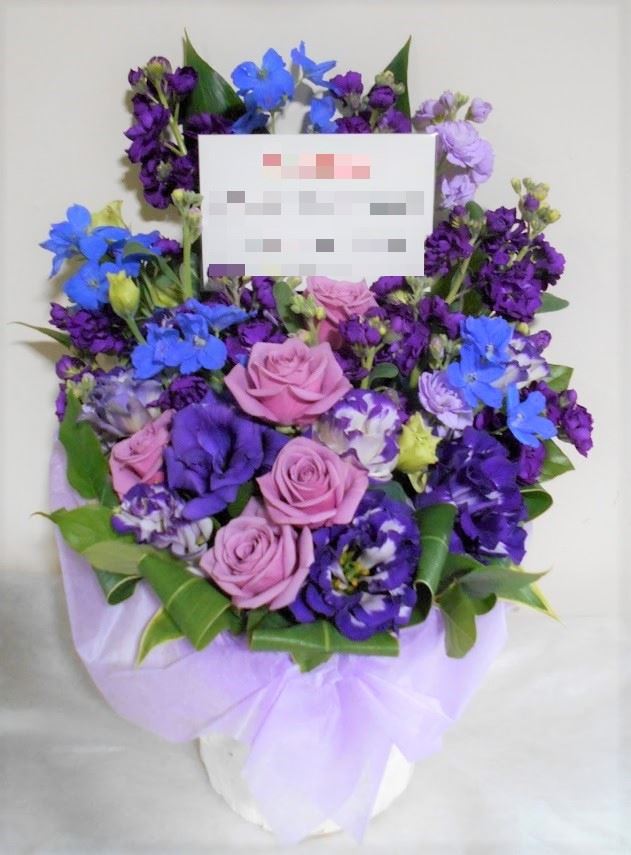 傘寿(80歳)のお祝い紫色のお花メインのアレンジメント5000