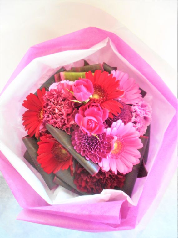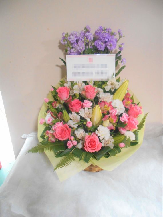 この写真は、実際にお届けさせていただいたアレンジメントです