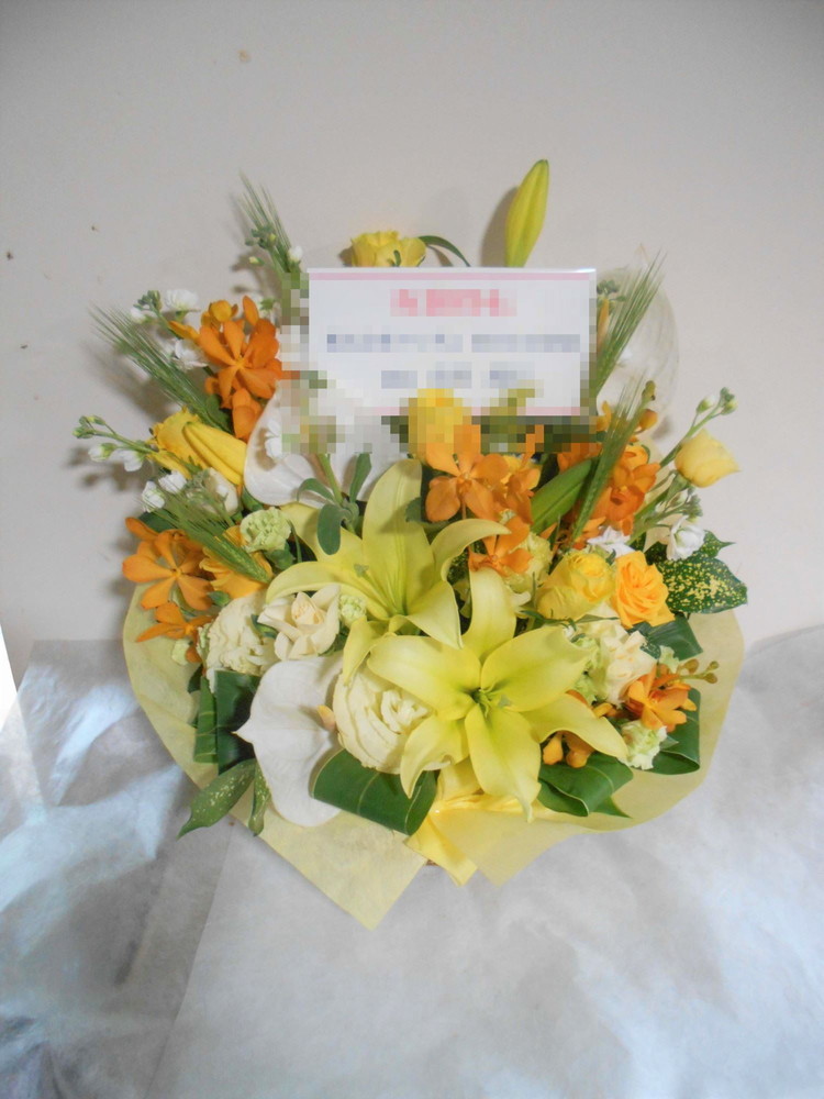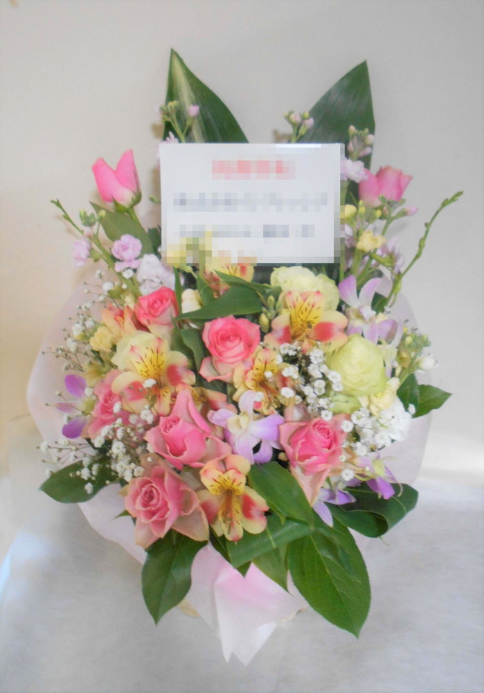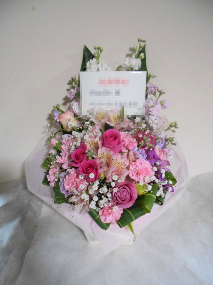 アレンジメントの実際にお届けした写真です。花秘書では発送前に写真をメールで送信致しますので安心して大切な顧客や取引様へのギフトにご利用頂けます。