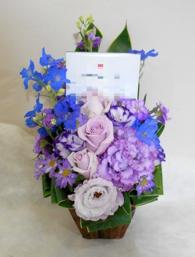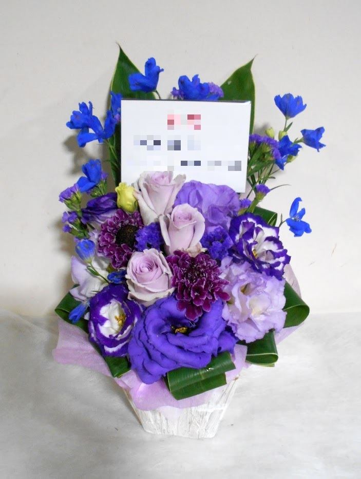 【青系】喜寿(77歳)のお祝い紫色のお花メインのアレンジメント5000