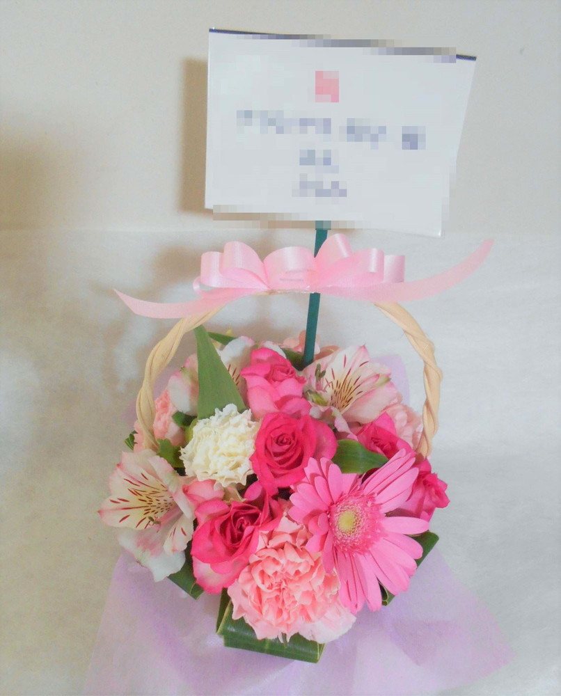 お悔やみ お供えの花 供花 (淡いピンク系のお花でまとめたバスケットアレンジ)