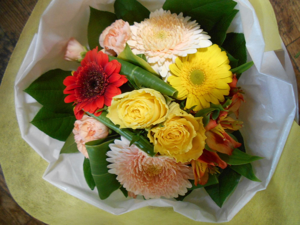 鮮やかな黄色オレンジ系のブーケ(花束)