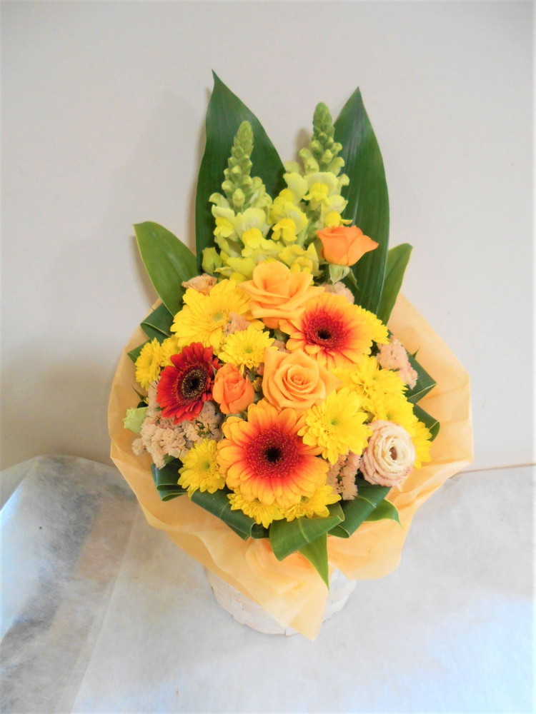 フラワーアレンジメント(イエロー・オレンジ系)[0801]