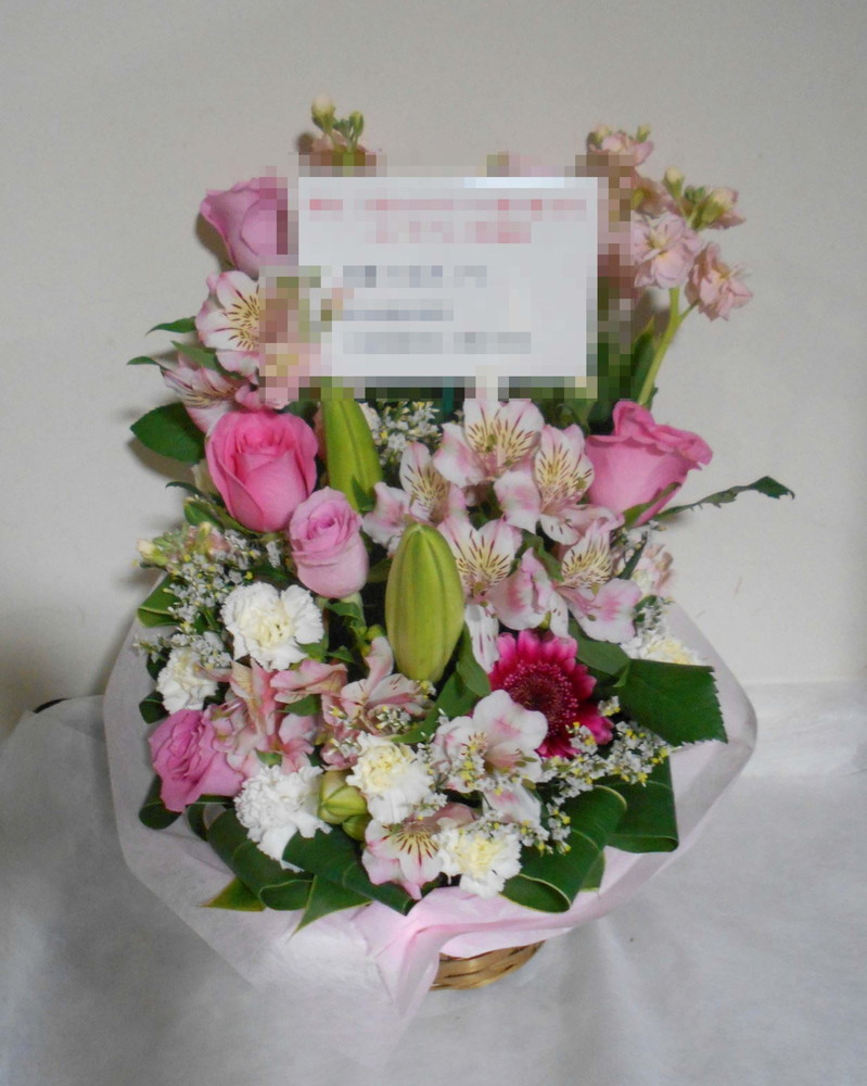 お悔やみ お供えの花 供花 (ホワイト&ピンクでまとめたバスケットアレンジ)