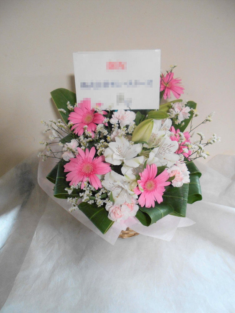 アレンジメントの実際にお届けした写真です。花秘書では発送前に写真をメールで送信致しますので安心して大切な顧客や取引様へのギフトにご利用頂けます。
