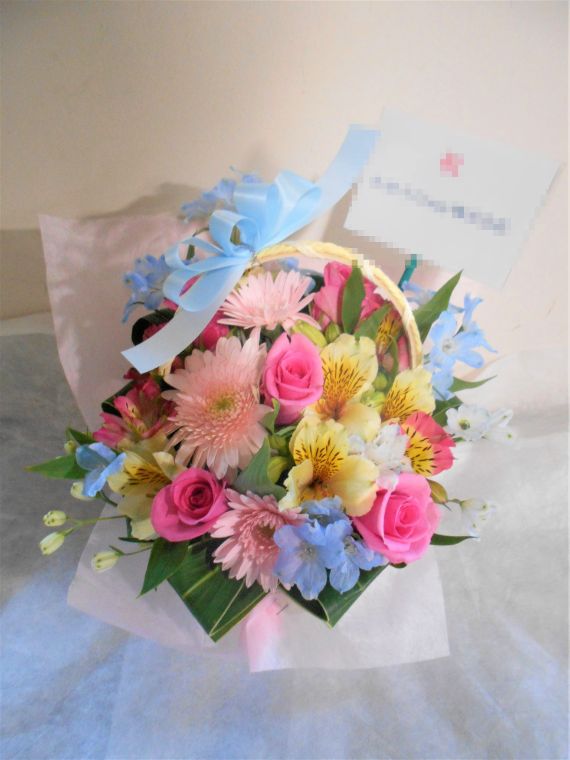生花(バスケット)サイズ 約[H:25(取手H約27)×W:20(cm)]