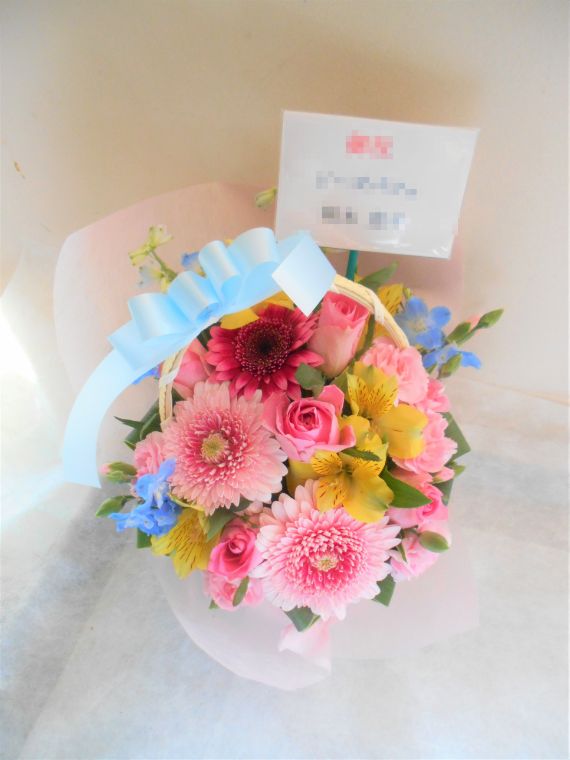 生花(バスケット)サイズ 約[H:25(取手H約27)×W:20(cm)]
