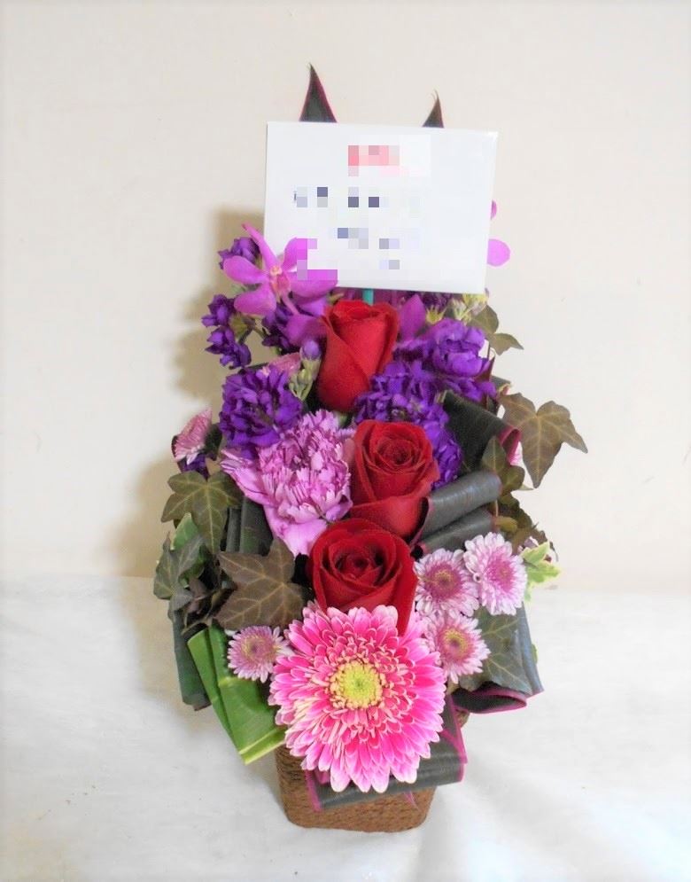 この写真は、実際にお届けさせていただいたアレンジメントです