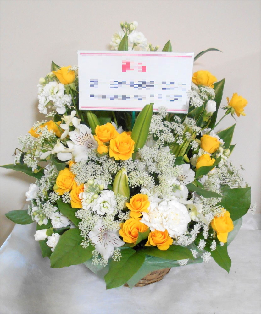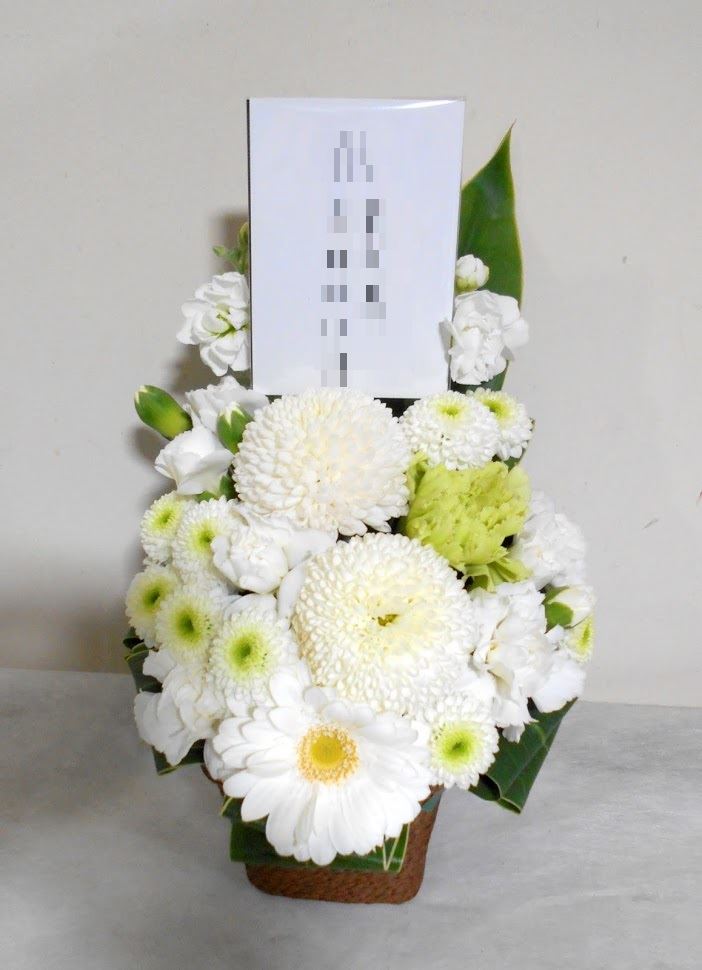 お悔やみ お供えの花 供花 (ホワイト&グリーンでまとめたバスケットアレンジ)