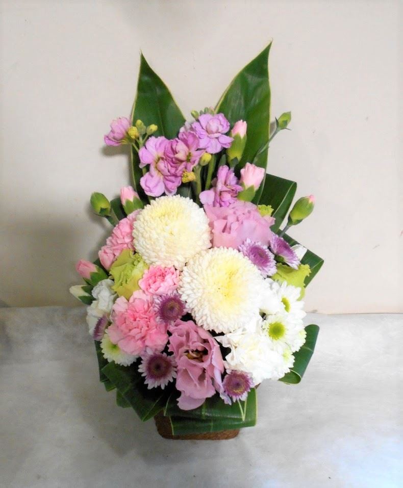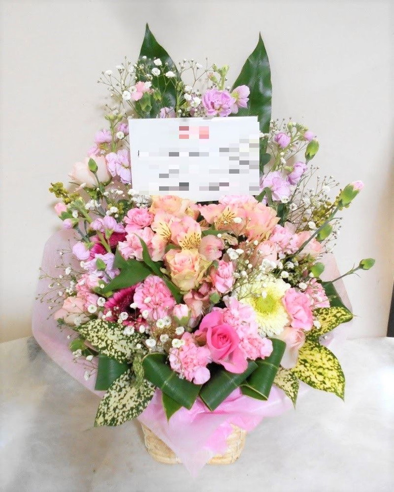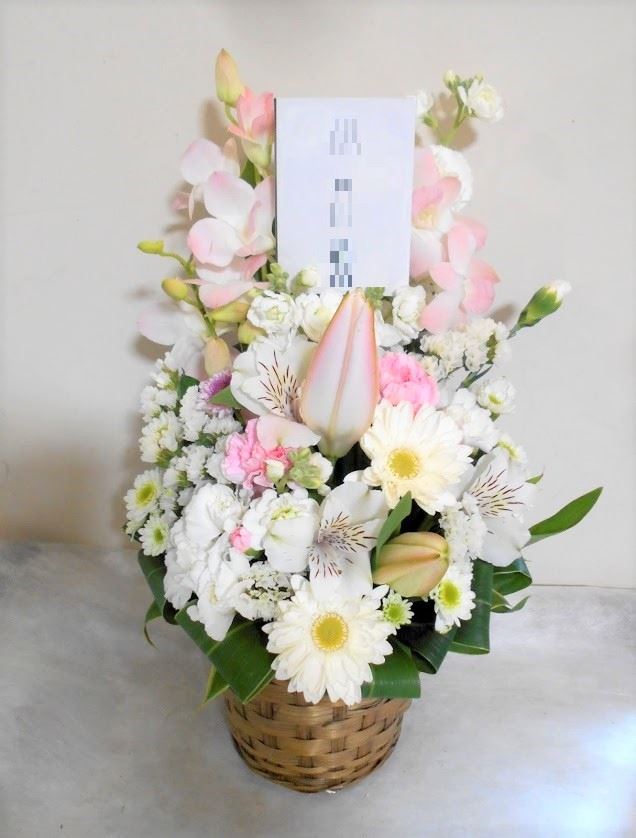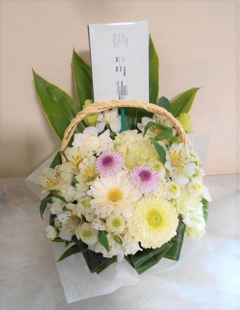 お悔やみ お供えの花 供花 (ホワイト&ピンクでまとめたバスケットアレンジ)