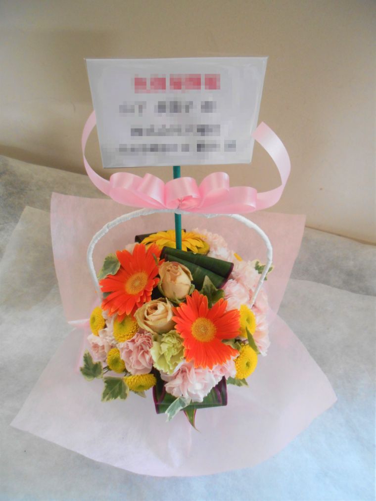アレンジメントの実際にお届けした写真です。花秘書では発送前に写真をメールで送信致しますので安心して大切な顧客や取引様へのギフトにご利用頂けます。