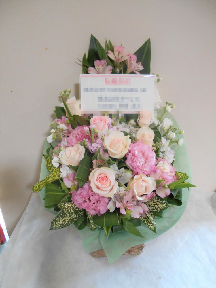 アレンジメントの実際にお届けした写真です。花秘書では発送前に写真をメールで送信致しますので安心して大切な顧客や取引様へのギフトにご利用頂けます。
