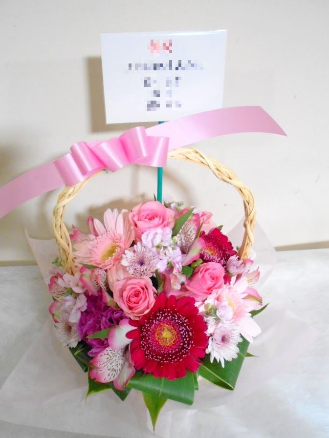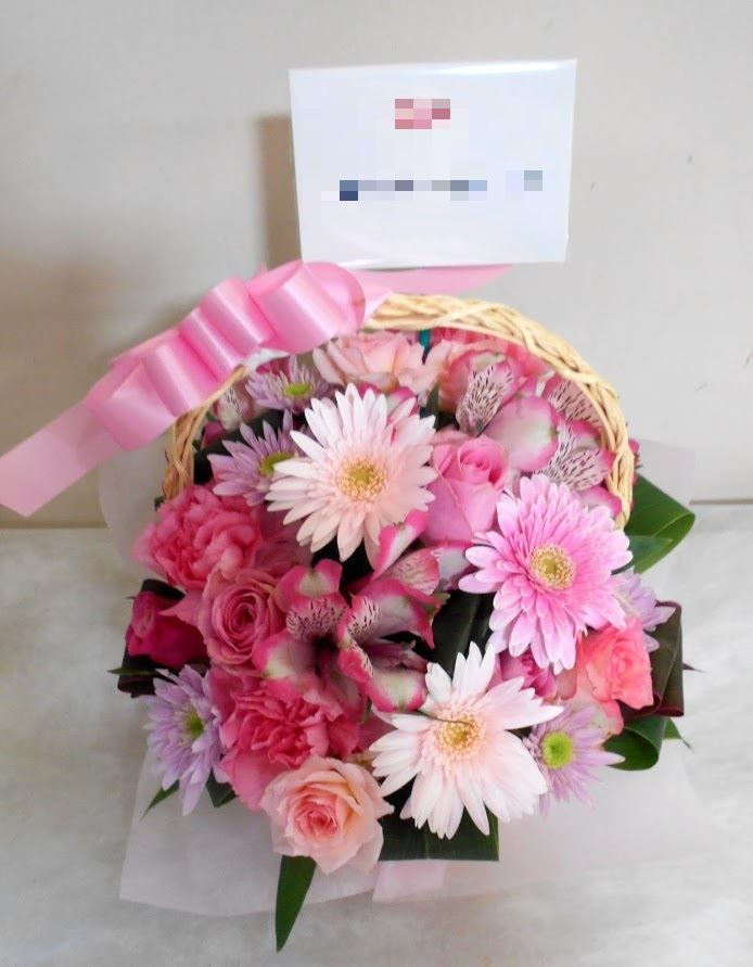 お悔やみ お供えの花 供花 (ホワイト&ピンクでまとめたバスケットアレンジ)