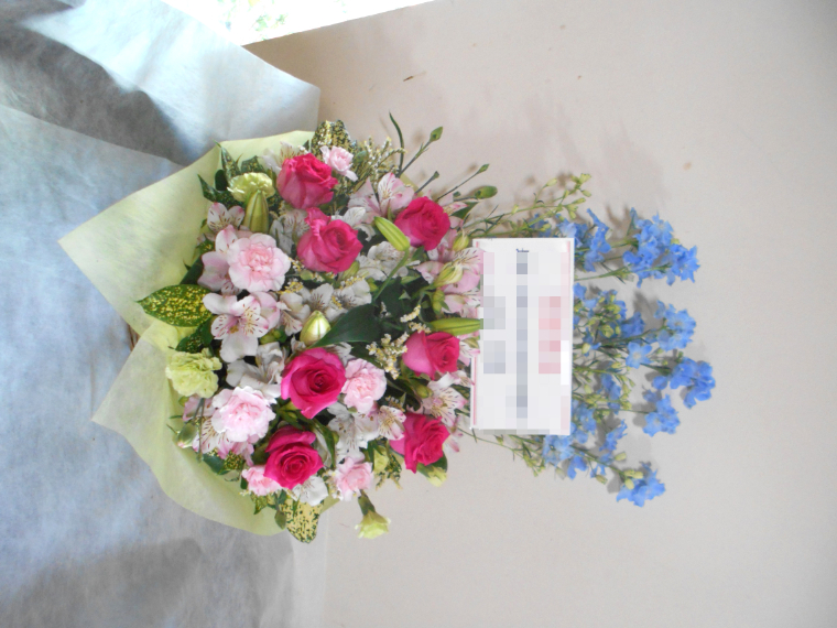 この写真は、実際にお届けさせていただいたアレンジメントです