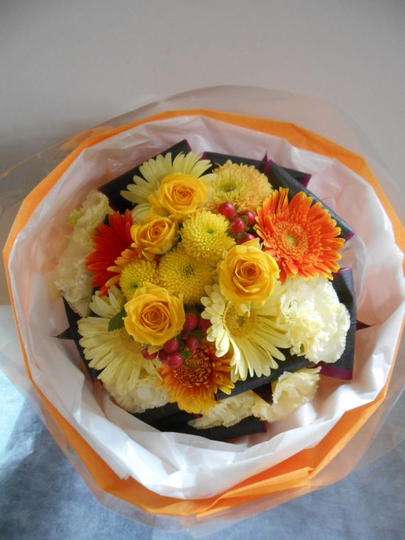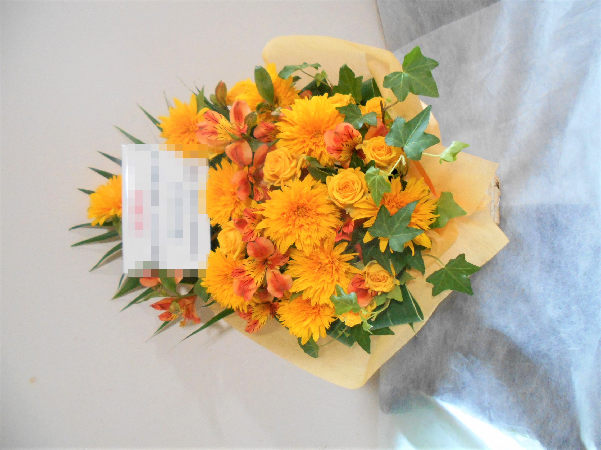 鮮やかな黄色オレンジ系のブーケ(花束)