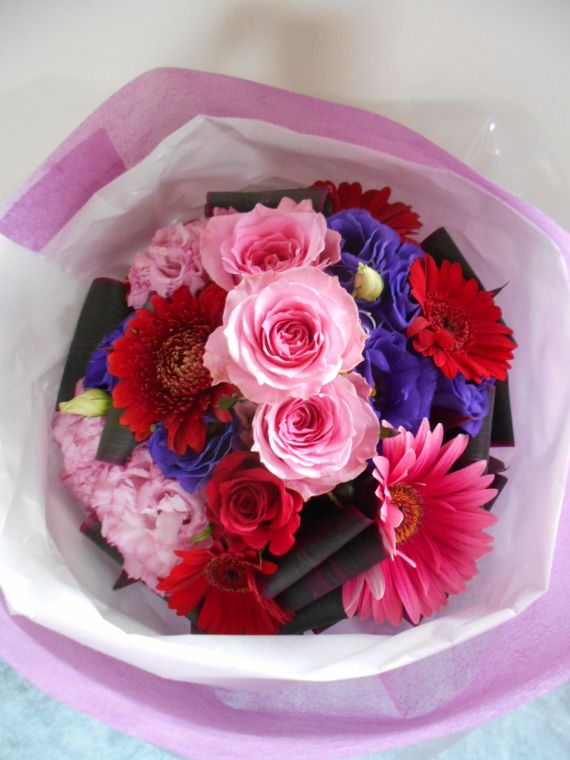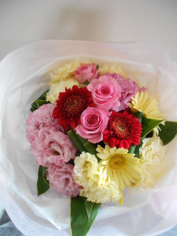 ピンク・レッド・クリームイエロー系のブーケ(花束)