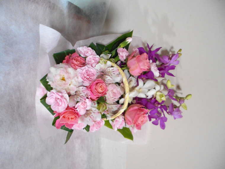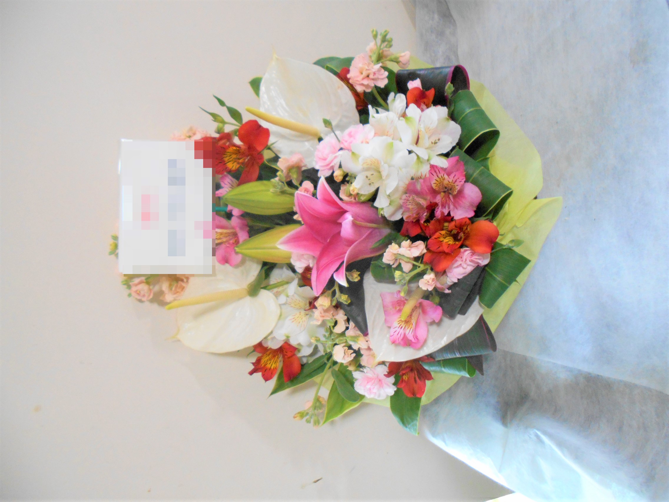 この写真は、実際にお届けさせていただいたアレンジメントです