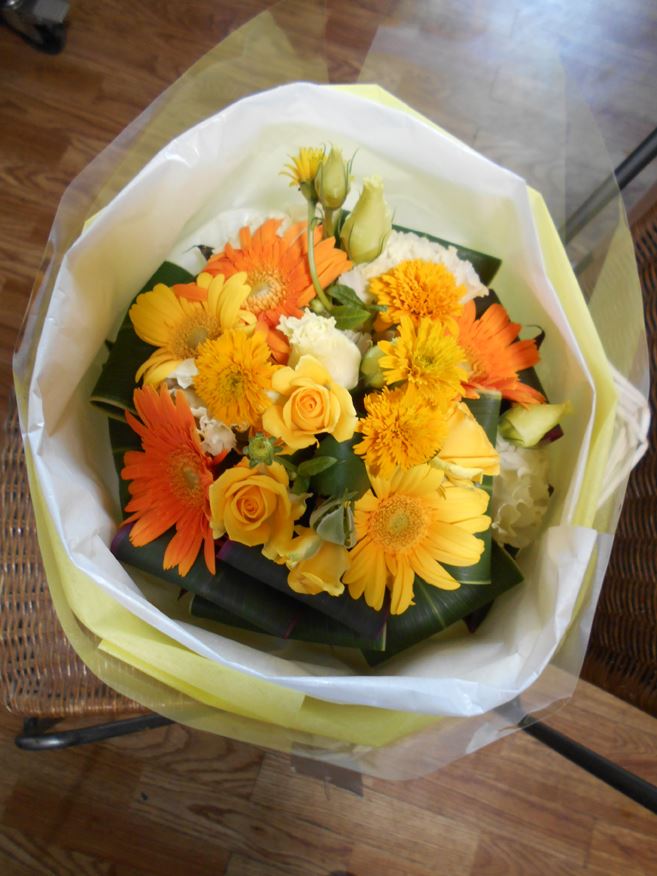 鮮やかな黄色オレンジ系のブーケ(花束)
