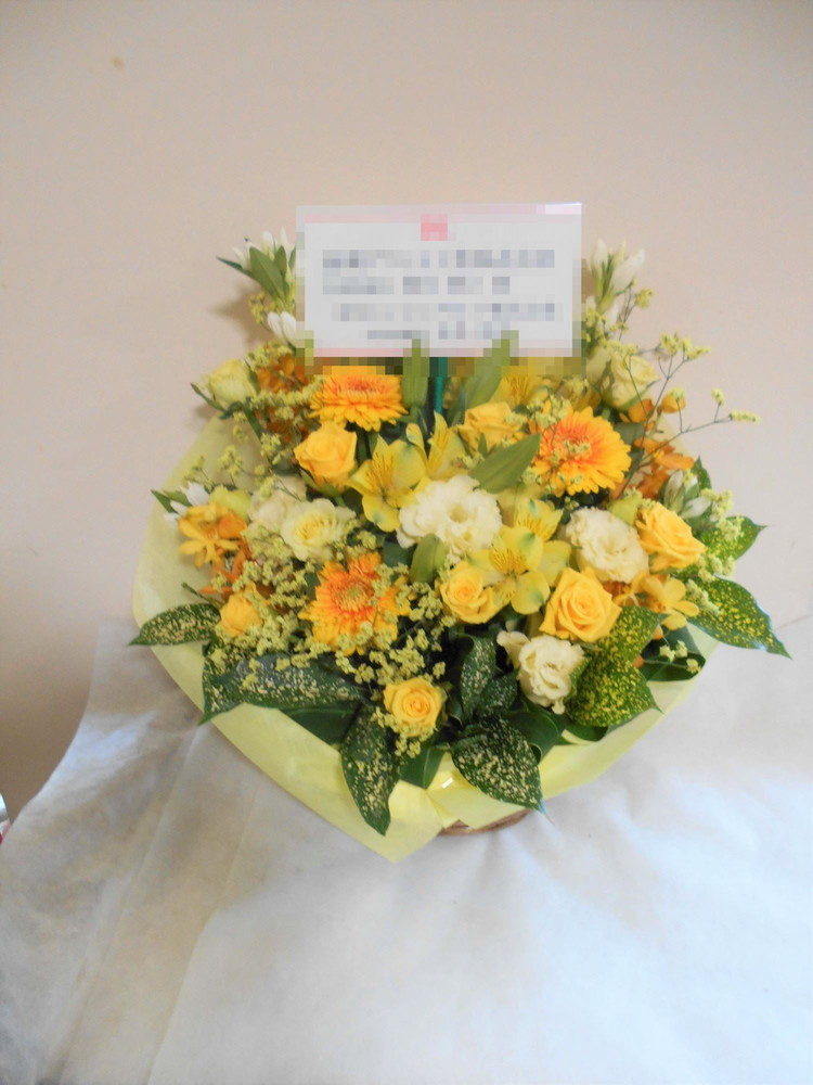 アレンジメントの実際にお届けした写真です。花秘書では発送前に写真をメールで送信致しますので安心して大切な顧客や取引様へのギフトにご利用頂けます。
