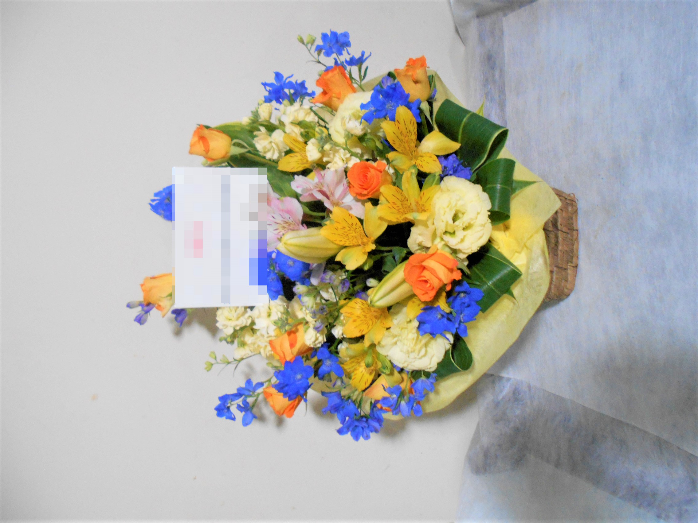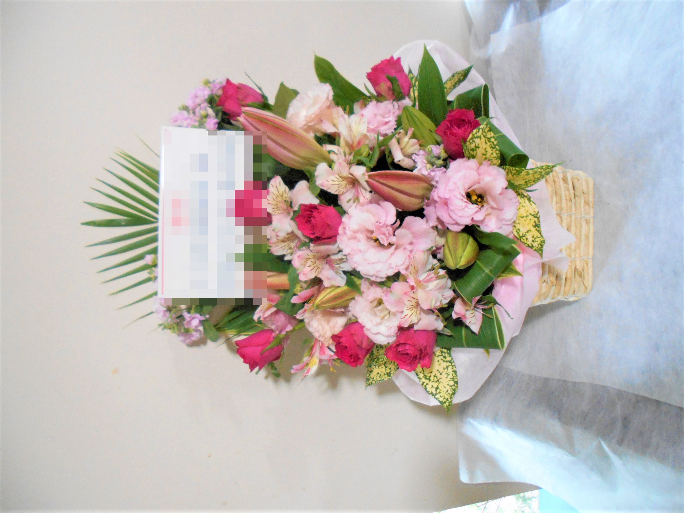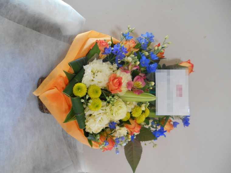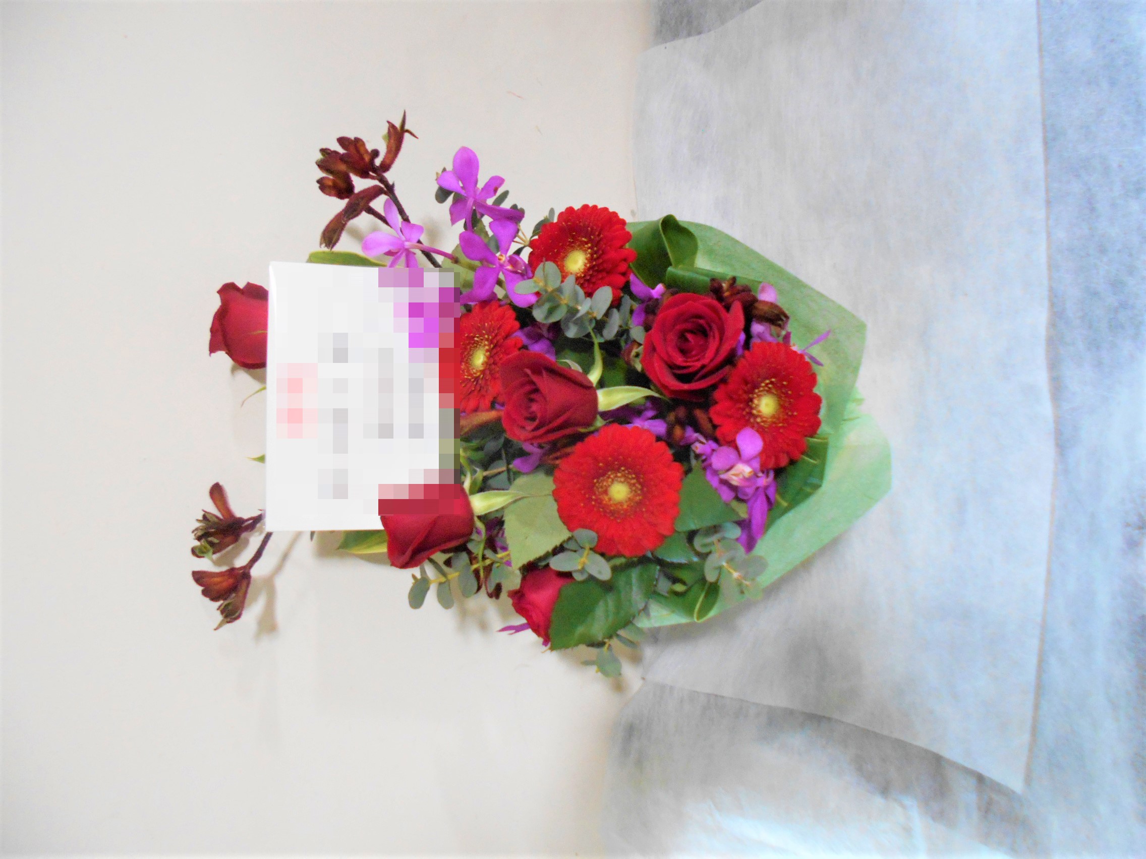 この写真は、実際にお届けさせていただいたアレンジメントです