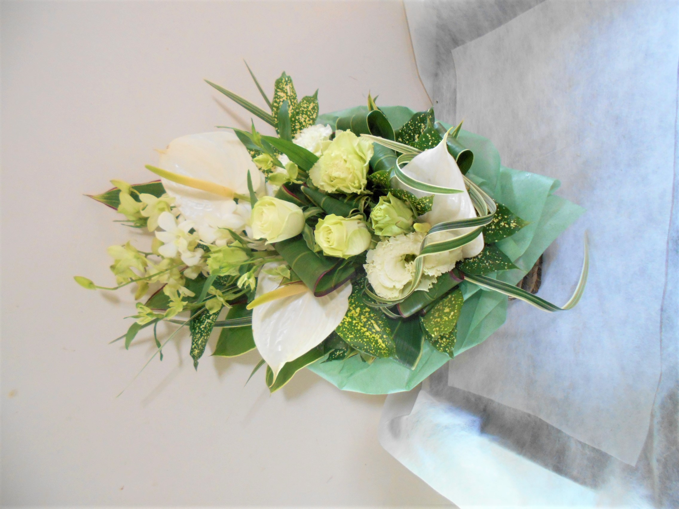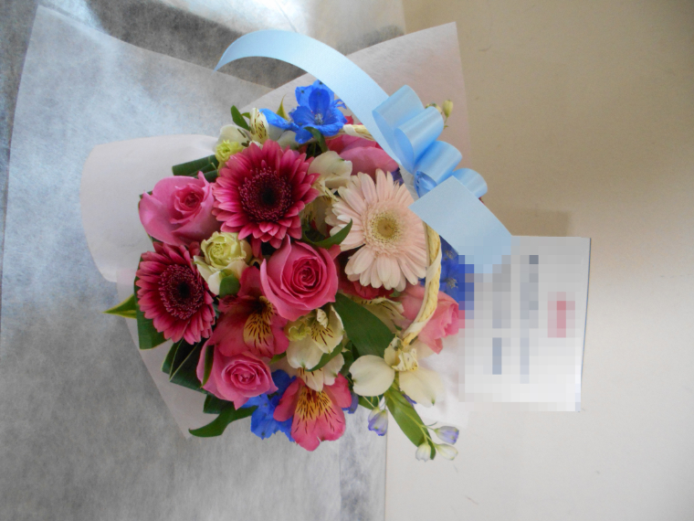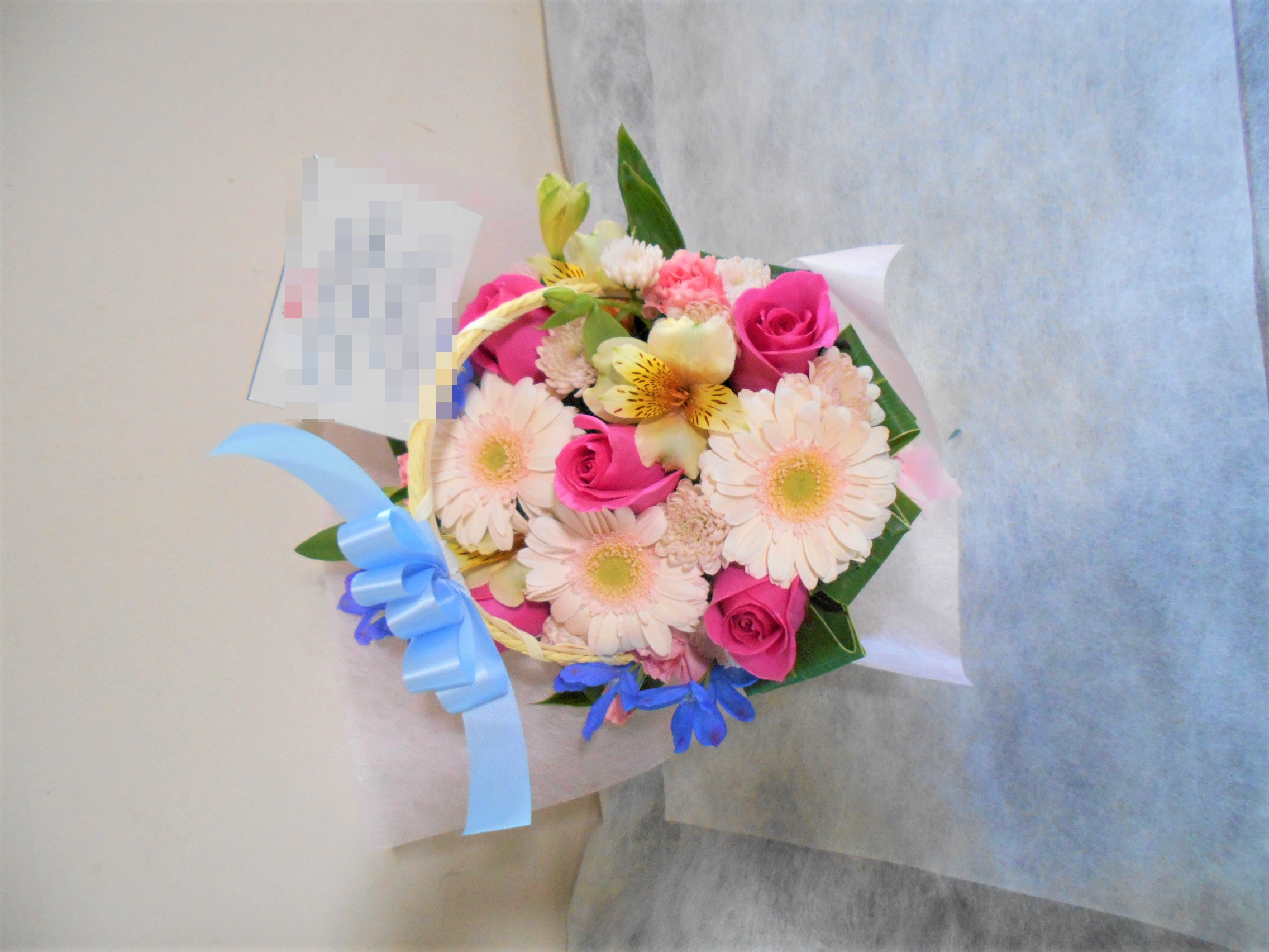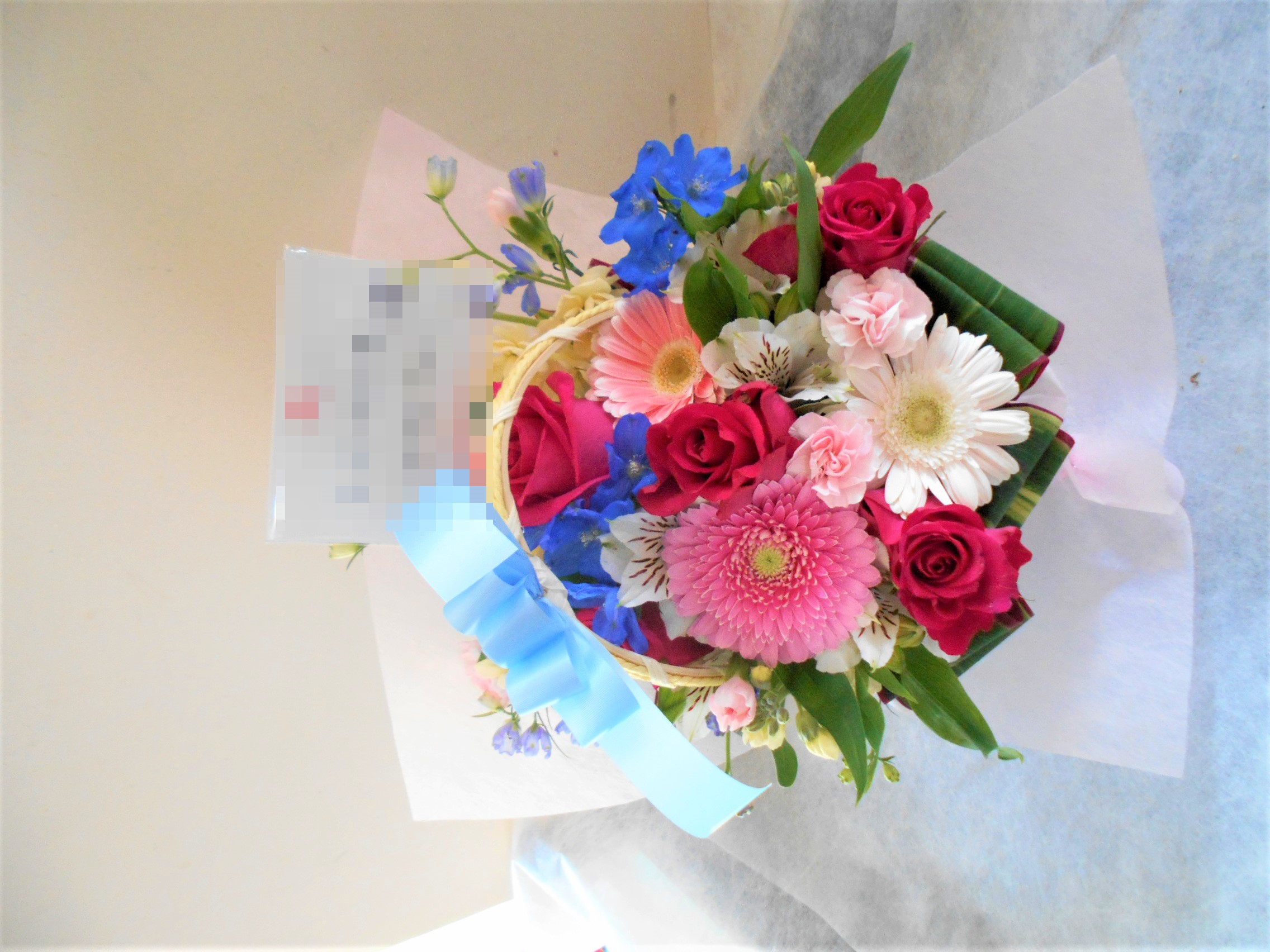この写真は、実際にお届けさせていただいたアレンジメントです