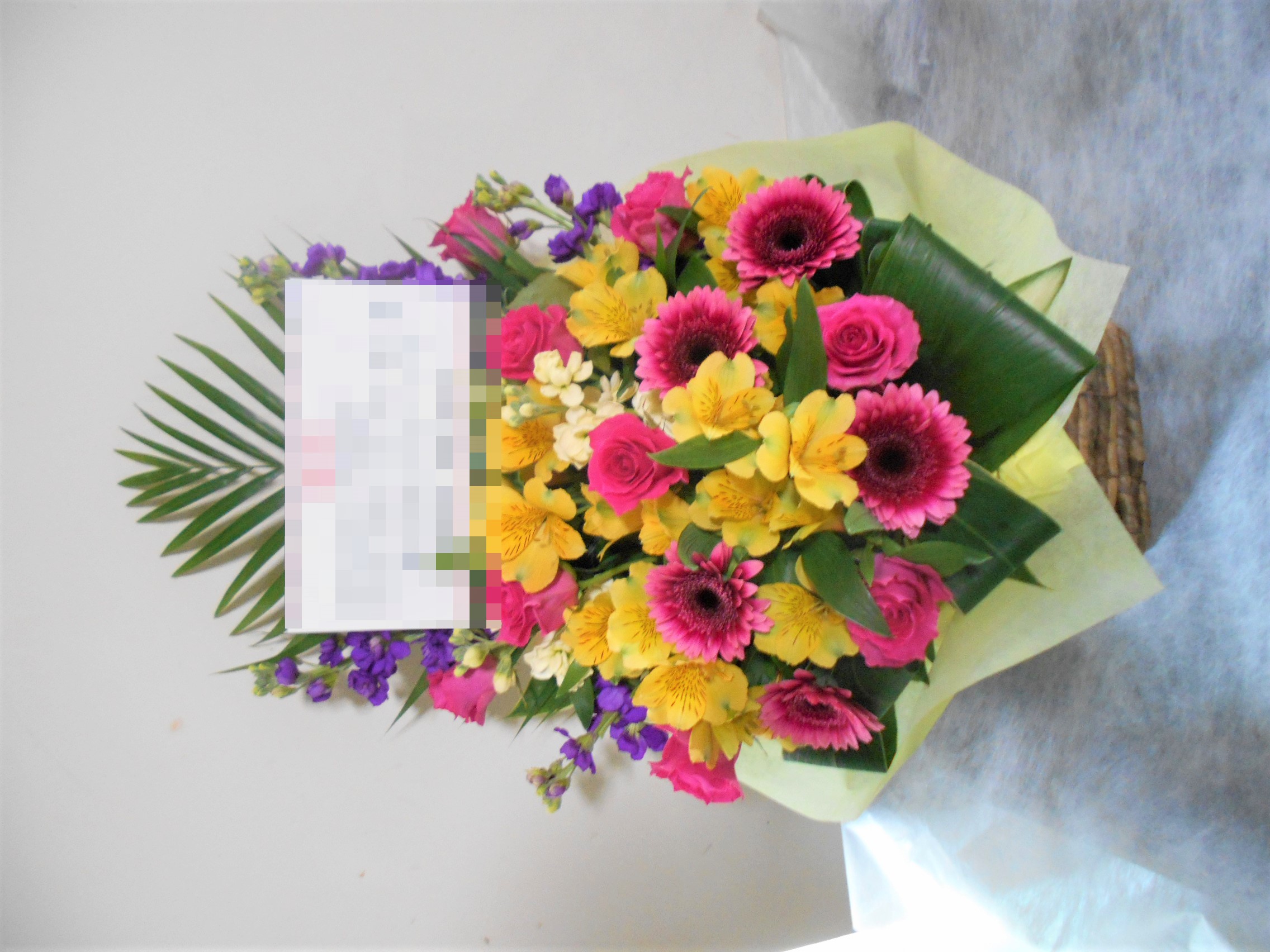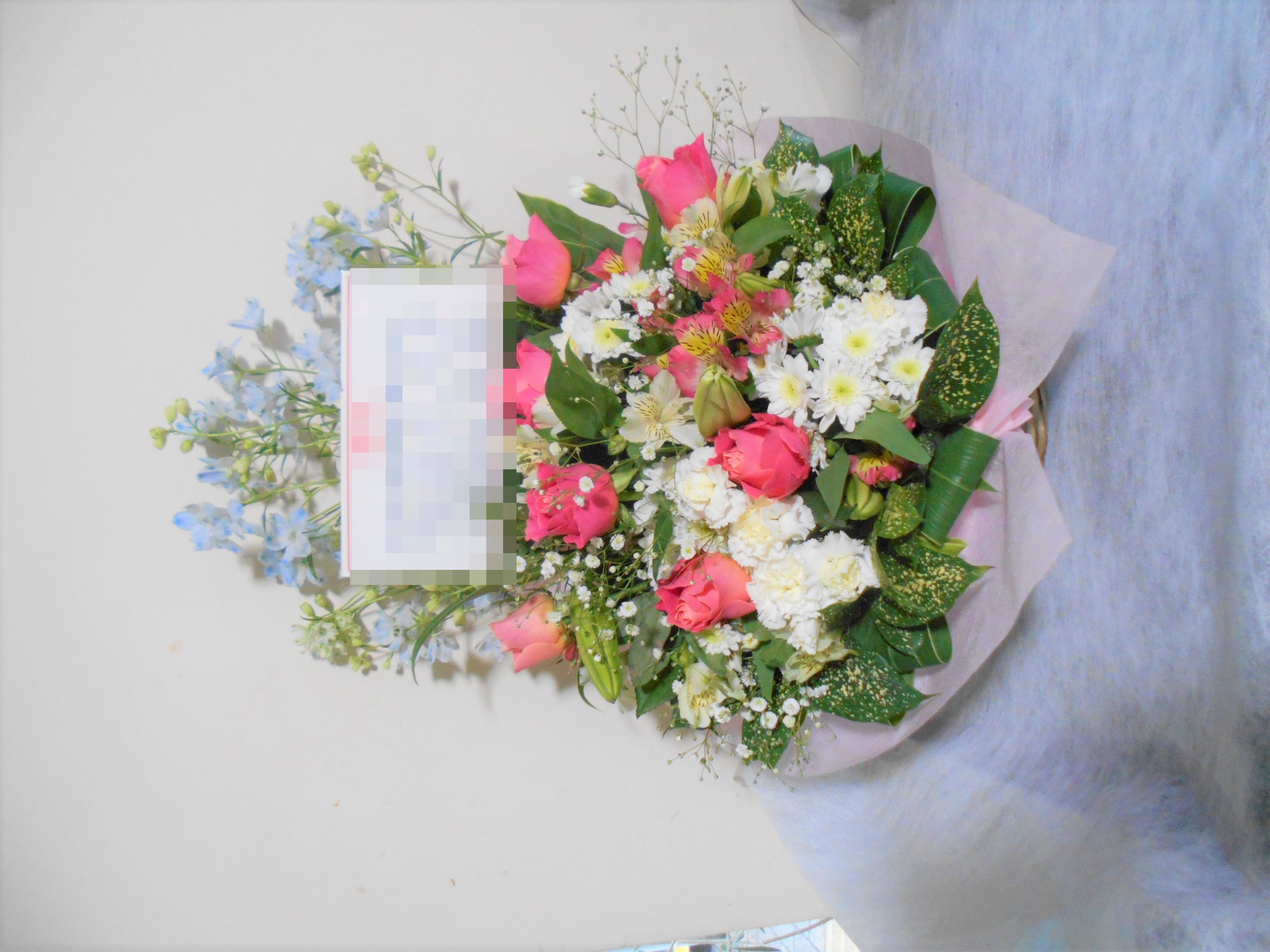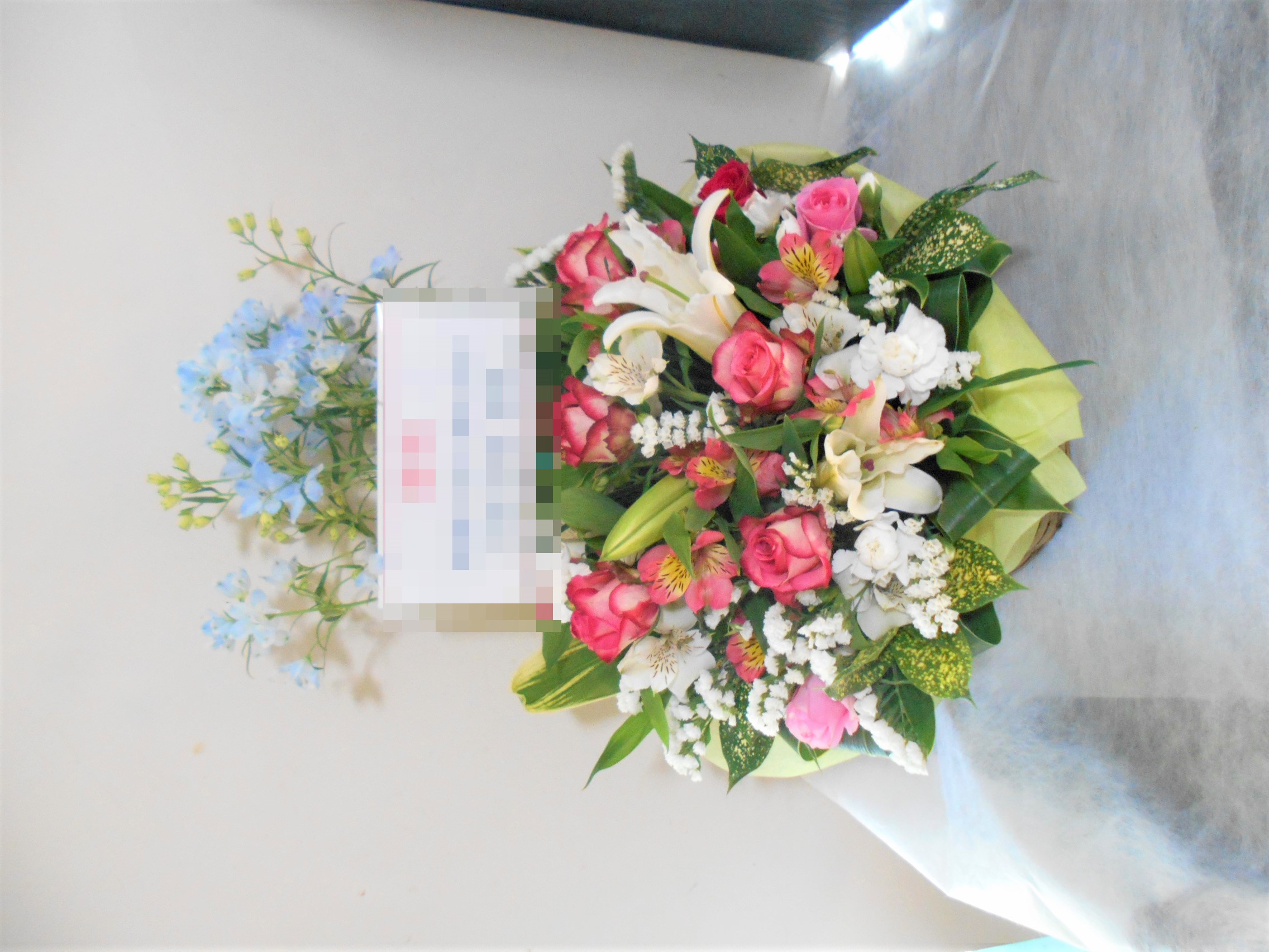 この写真は、実際にお届けさせていただいたアレンジメントです