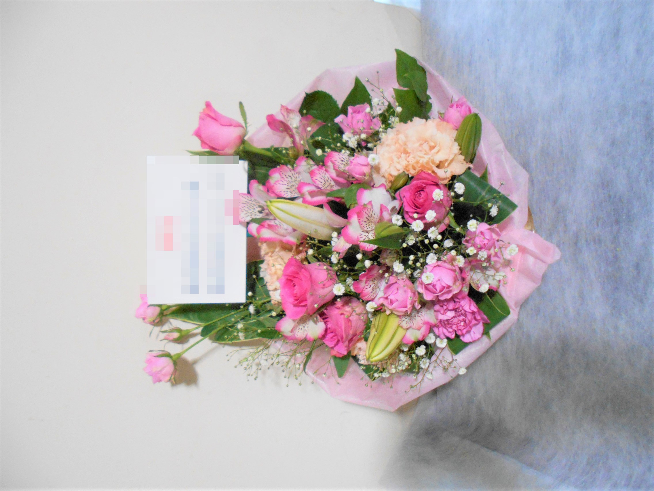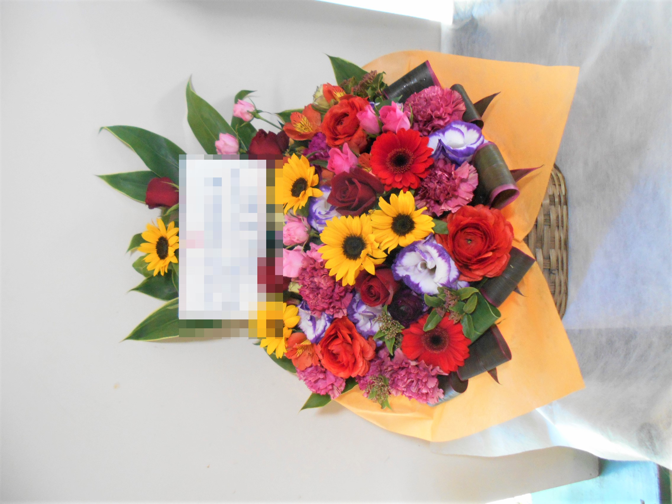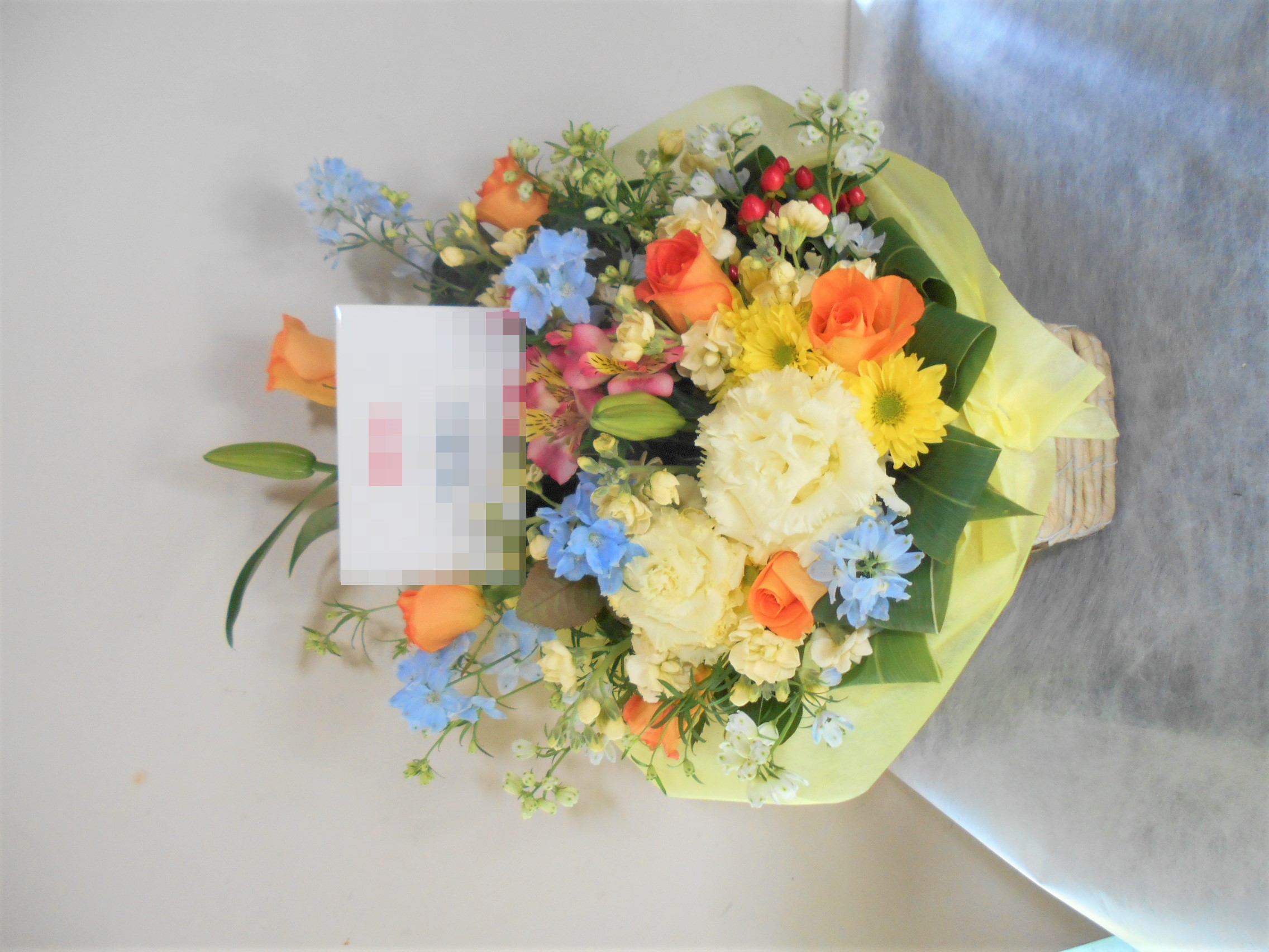 この写真は、実際にお届けさせていただいたアレンジメントです