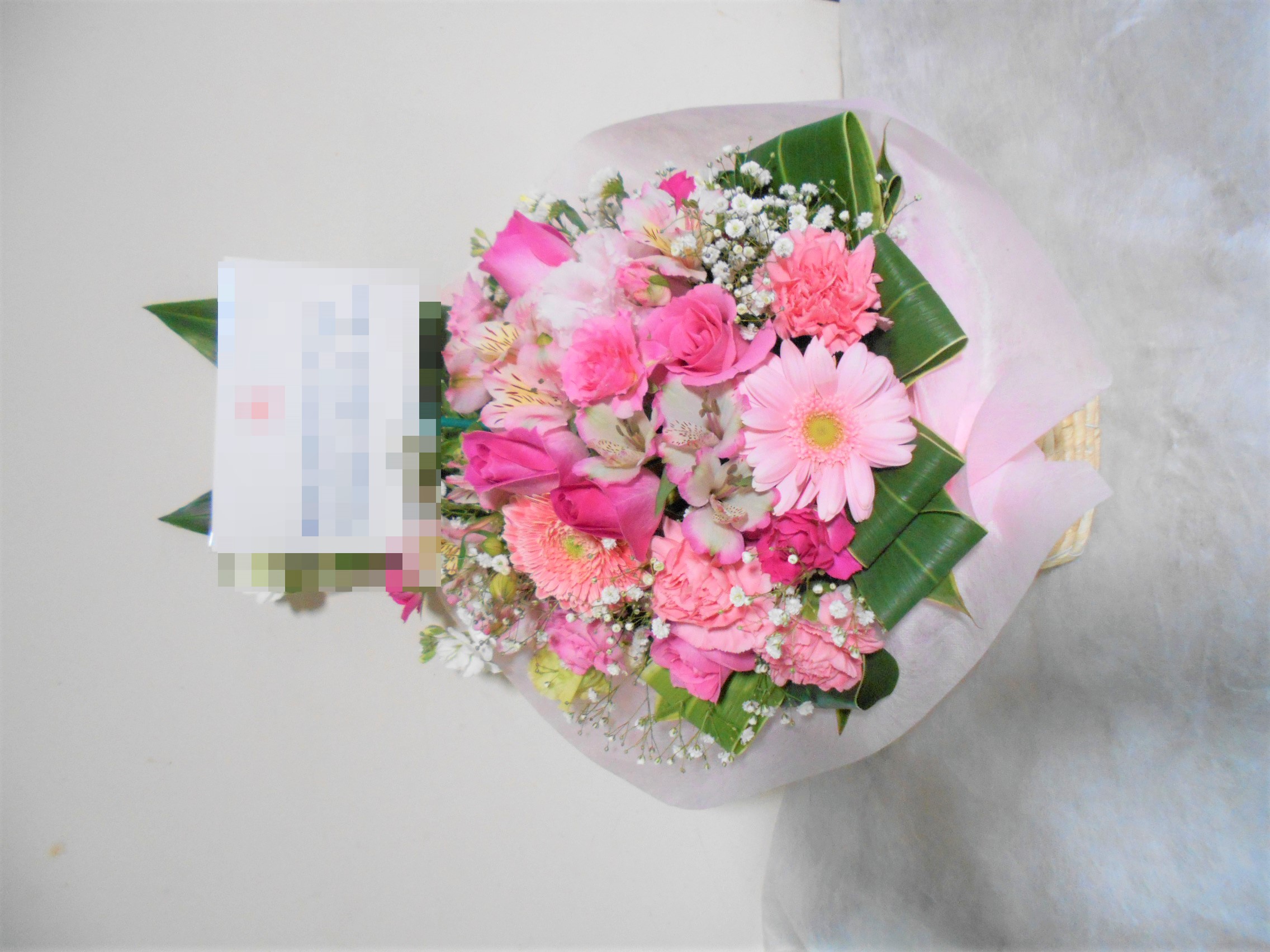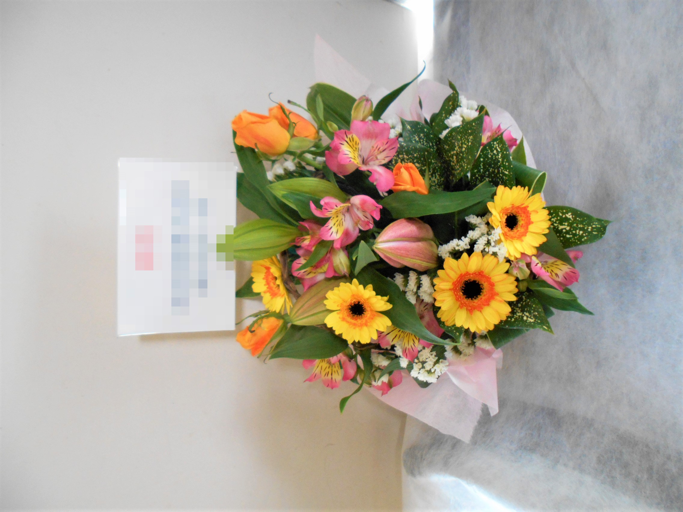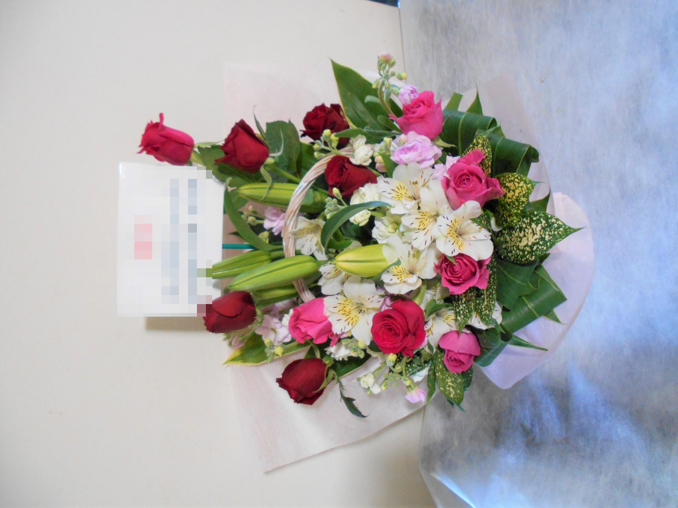 アレンジメントの実際にお届けした写真です。花秘書では発送前に写真をメールで送信致しますので安心して大切な顧客や取引様へのギフトにご利用頂けます。