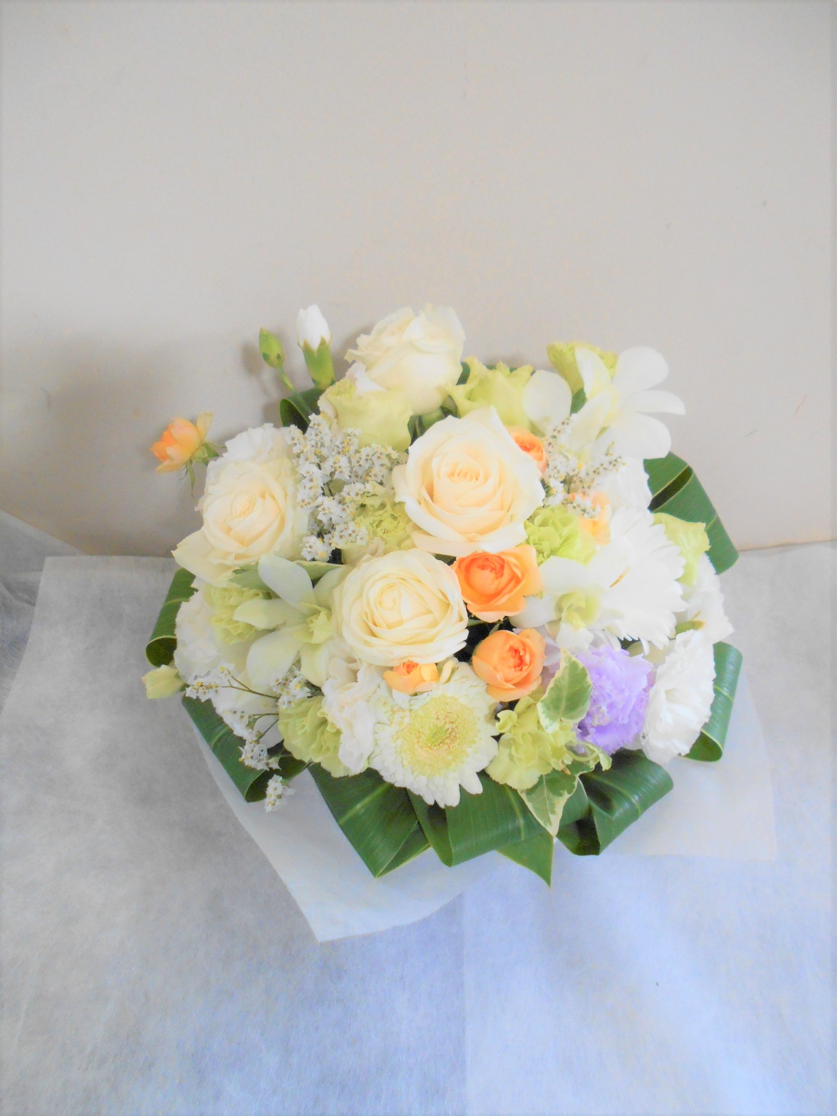 この写真は、実際にお届けさせていただいたアレンジメントです