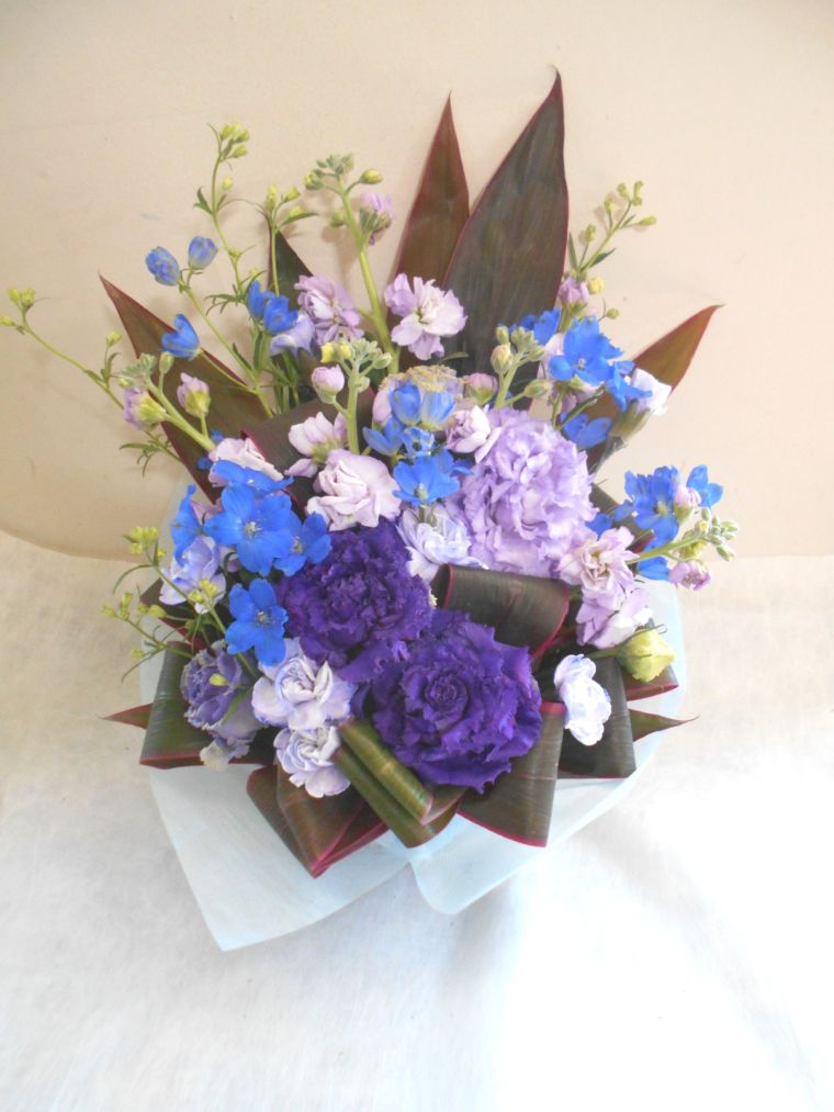 喜寿(77歳)のお祝い紫色のお花メインのアレンジメント10000