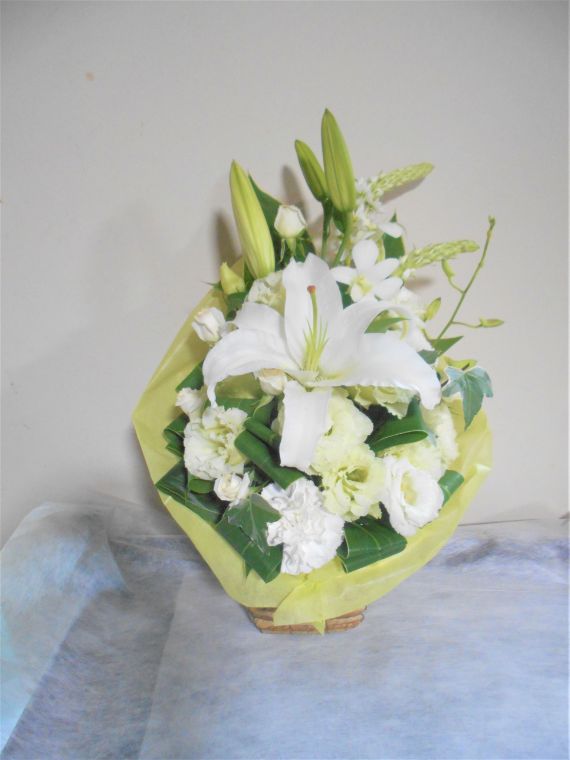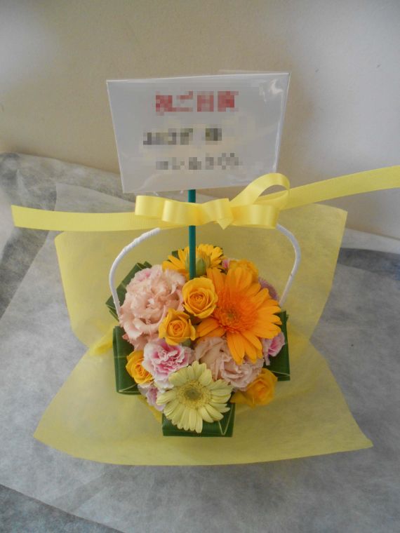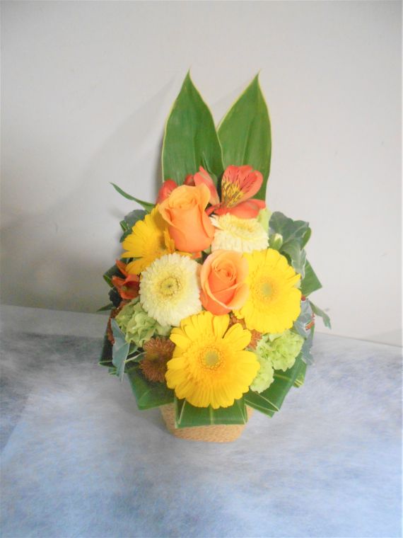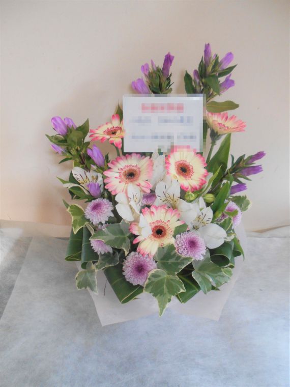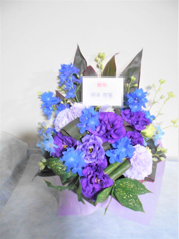 この写真は、実際にお届けさせていただいたアレンジメントです