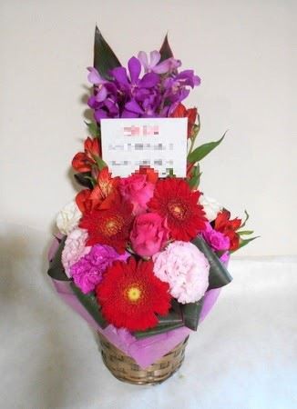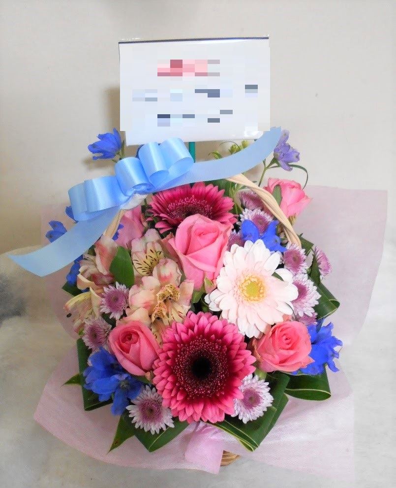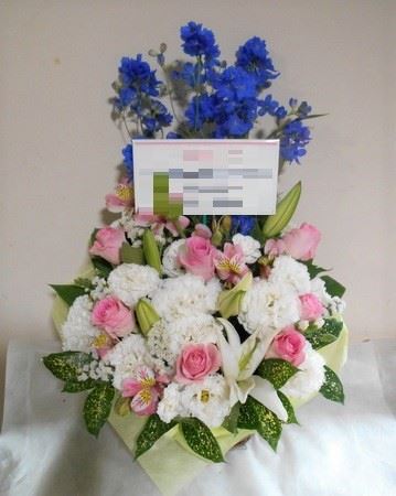 この写真は、実際にお届けさせていただいたアレンジメントです
