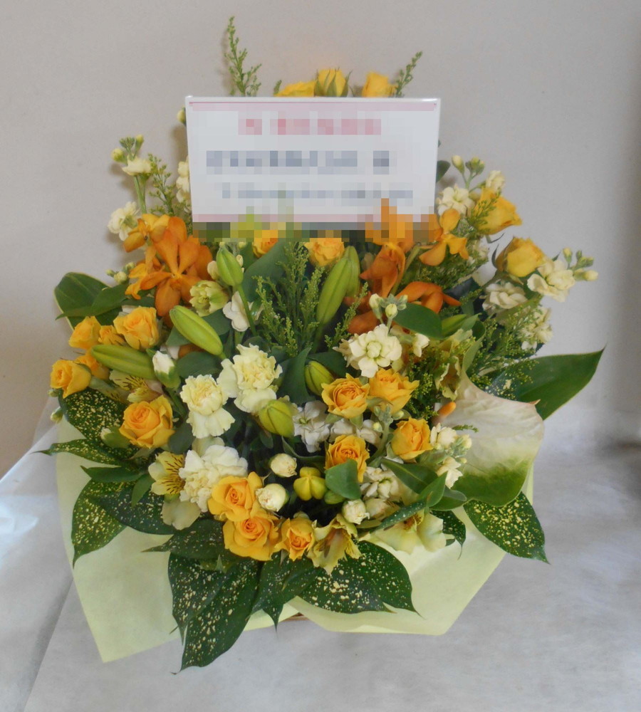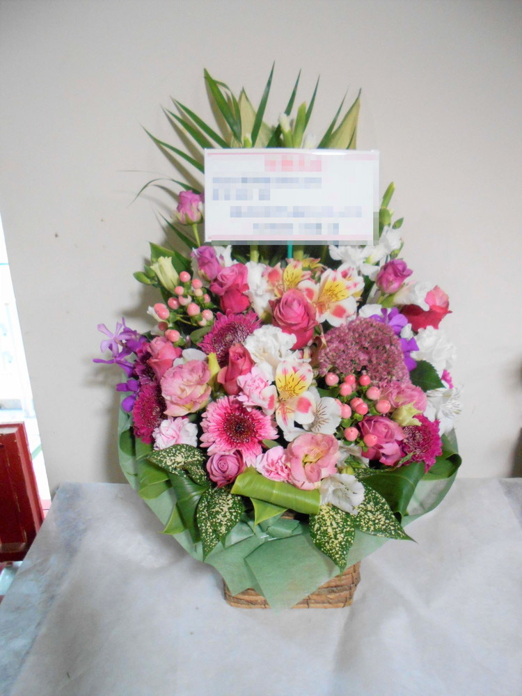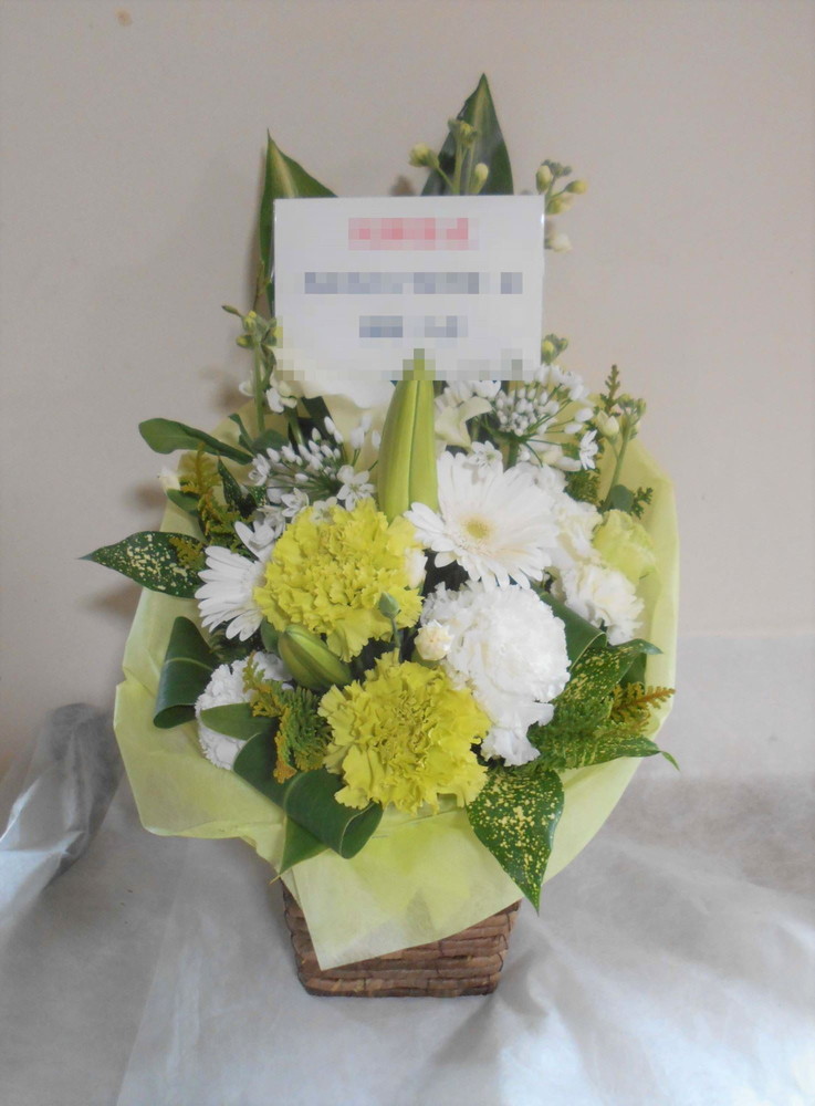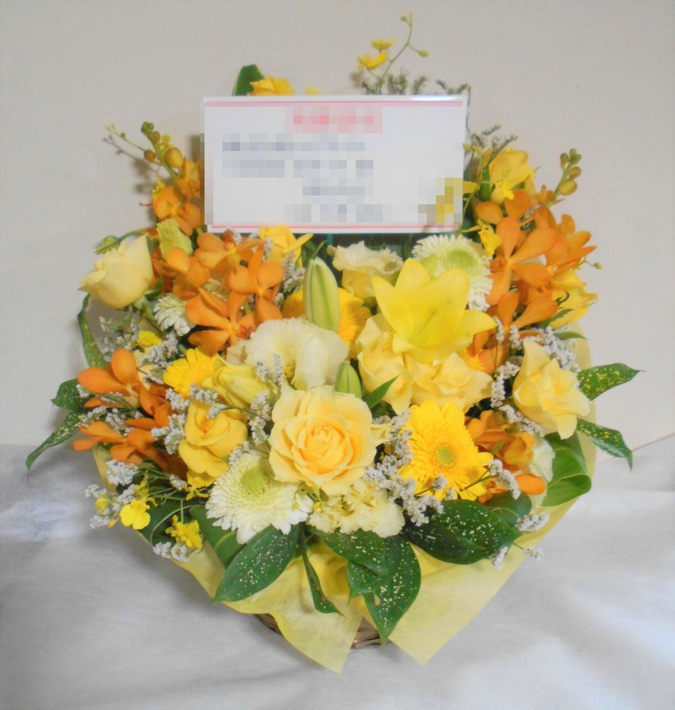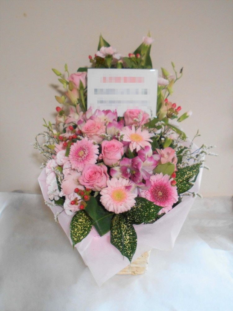 アレンジメントの実際にお届けした写真です。花秘書では発送前に写真をメールで送信致しますので安心して大切な顧客や取引様へのギフトにご利用頂けます。