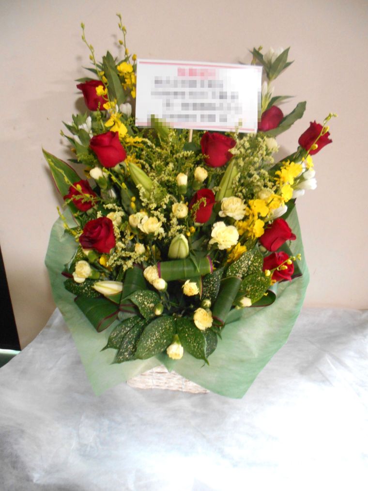 アレンジメントの実際にお届けした写真です。花秘書では発送前に写真をメールで送信致しますので安心して大切な顧客や取引様へのギフトにご利用頂けます。
