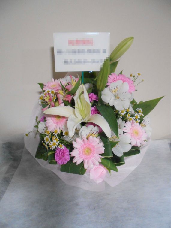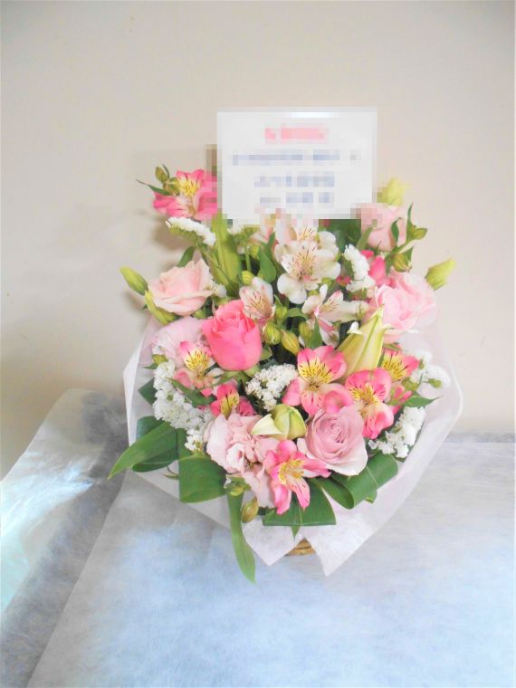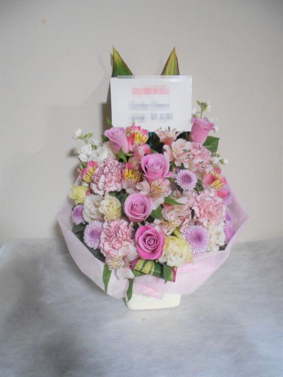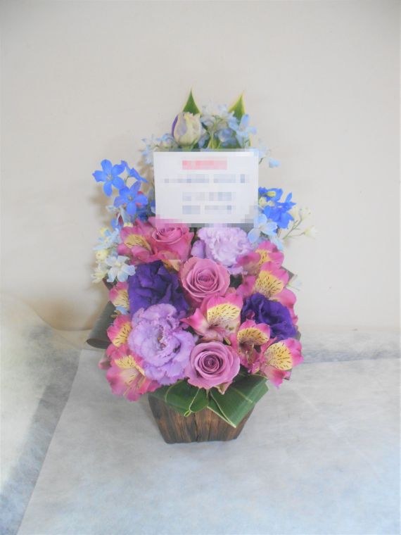 この写真は、実際にお届けさせていただいたアレンジメントです