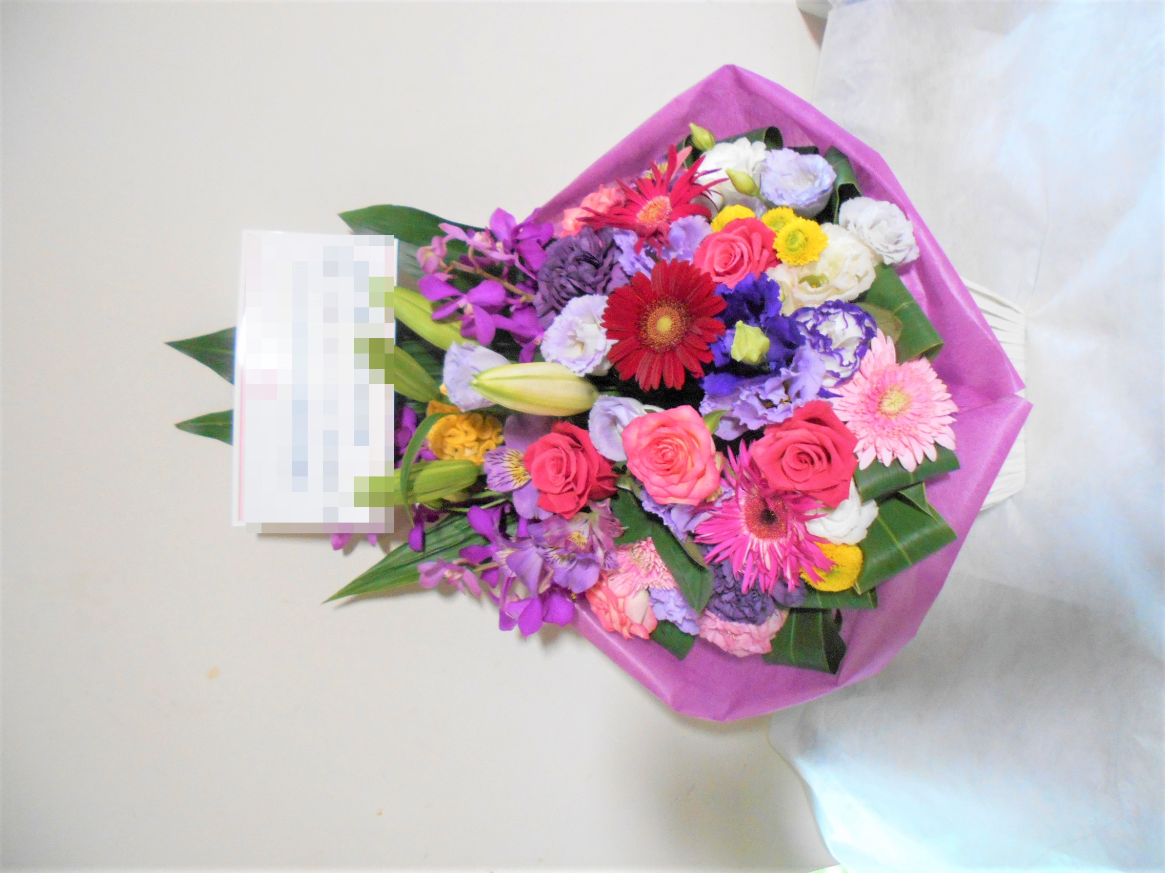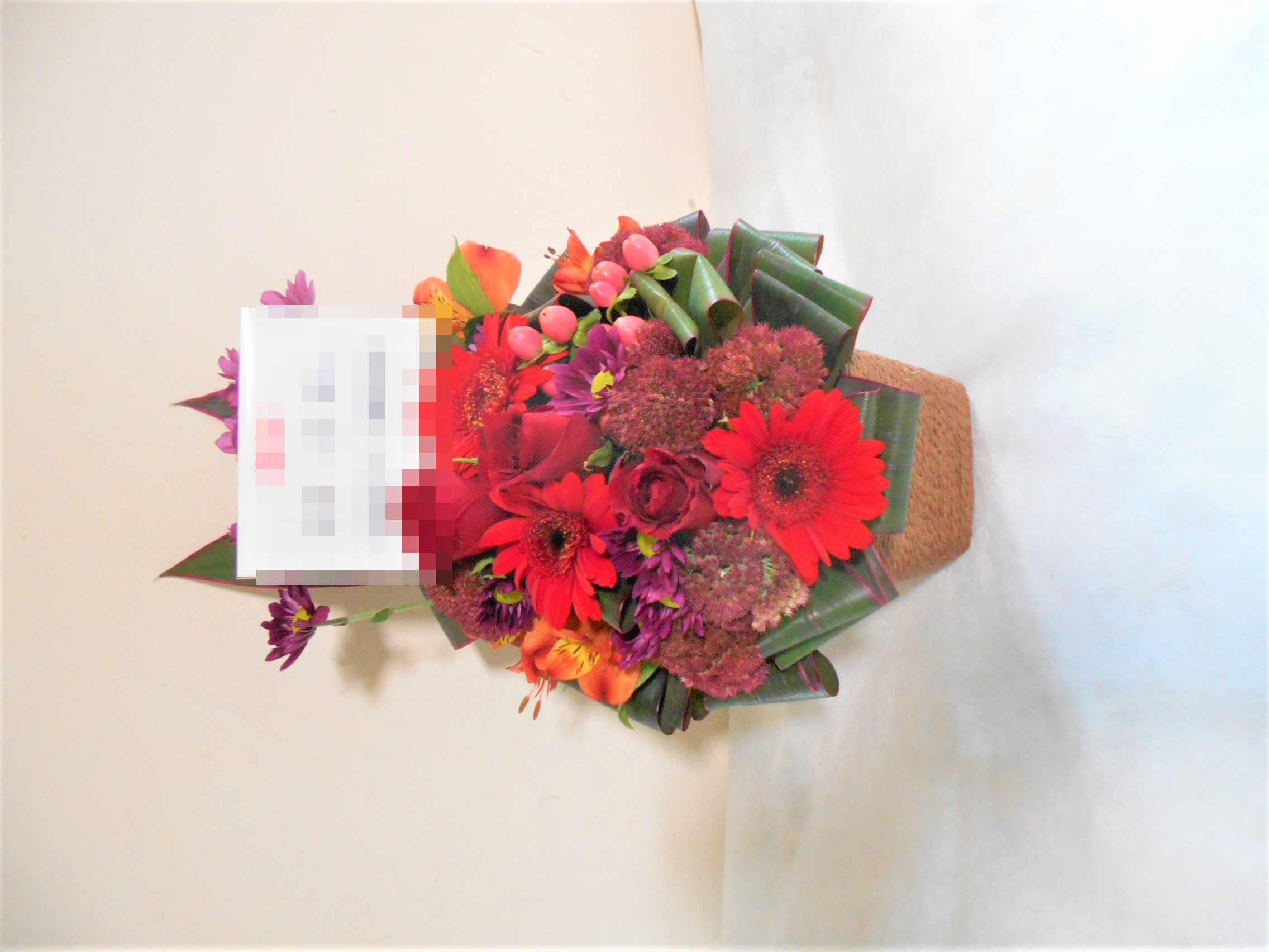 この写真は、実際にお届けさせていただいたアレンジメントです