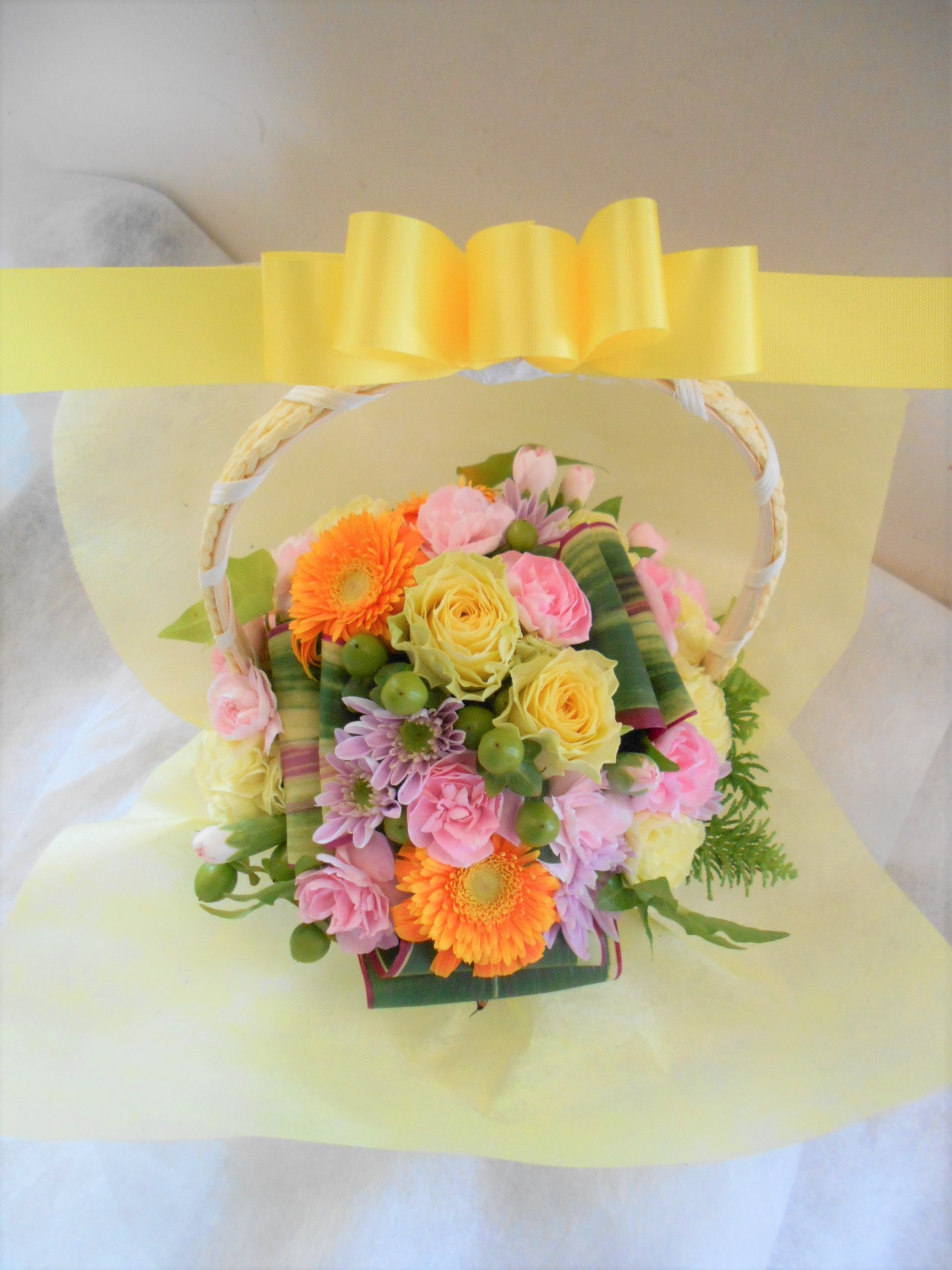 生花(バスケット)サイズ 約[H:25(取手H約27)×W:20(cm)]