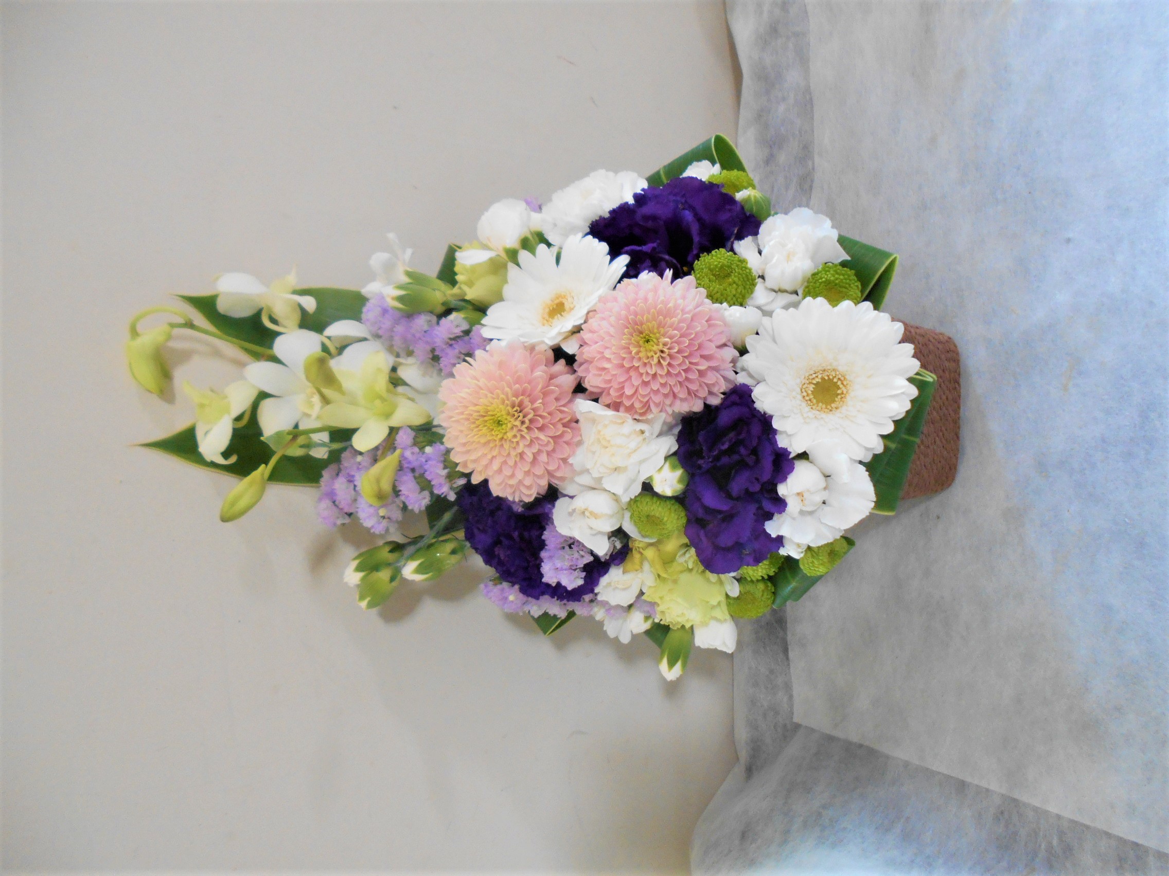 この写真は、実際にお届けさせていただいたアレンジメントです