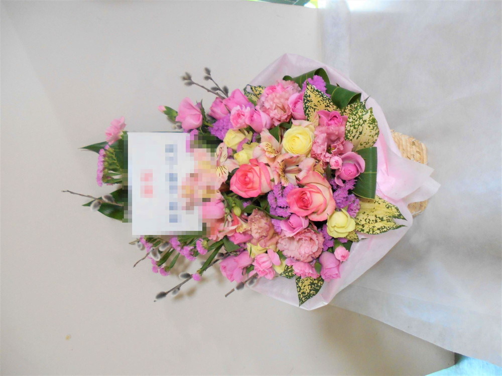 この写真は、実際にお届けさせていただいたアレンジメントです