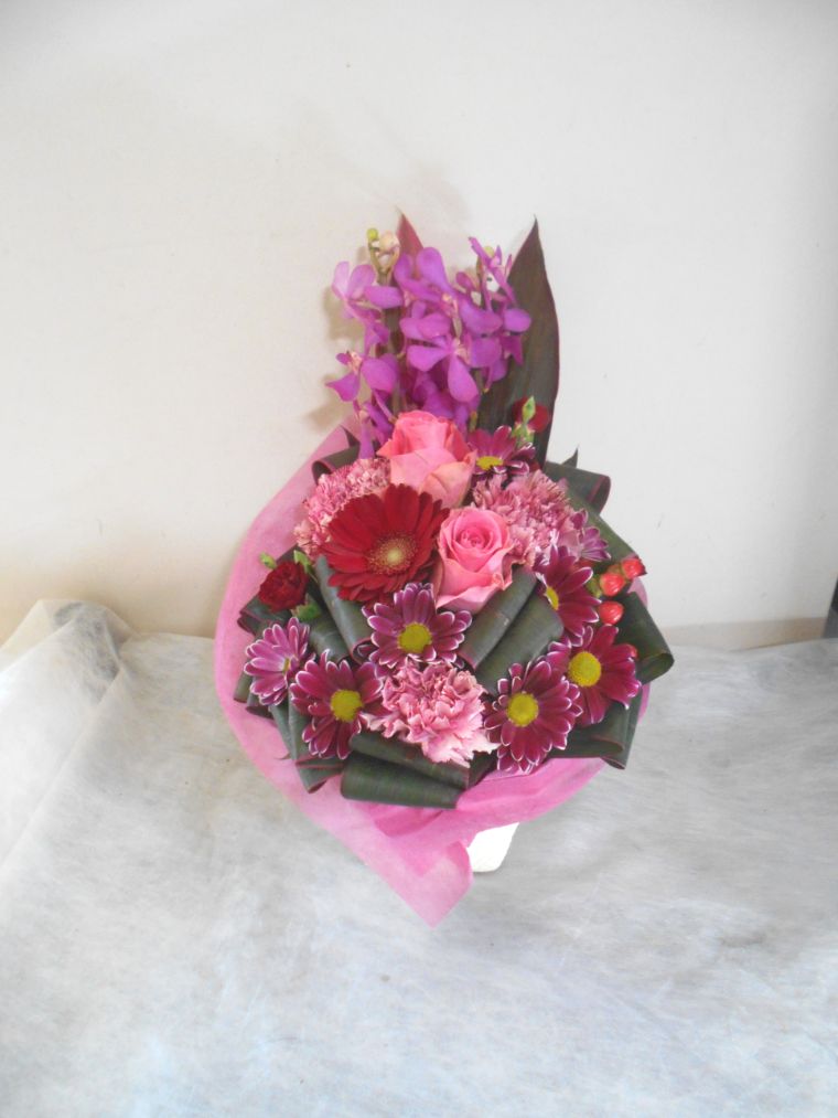 この写真は、実際にお届けさせていただいたアレンジメントです