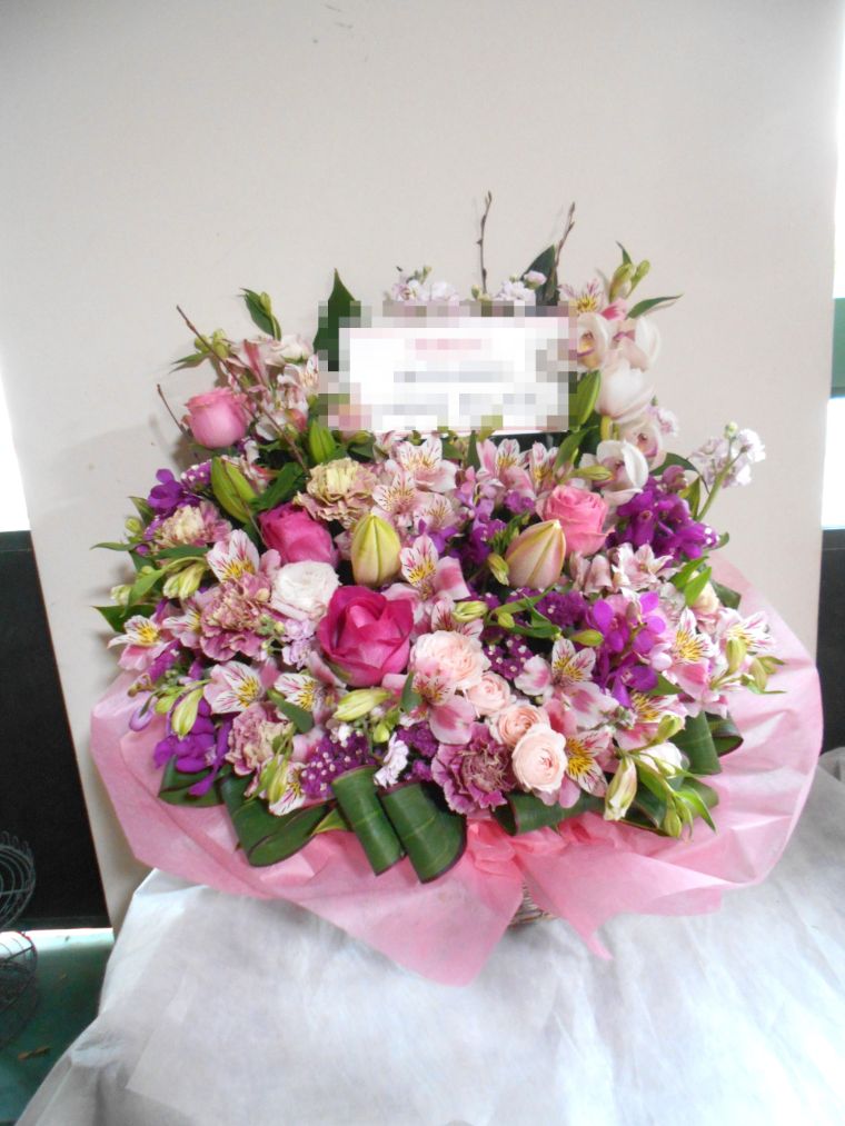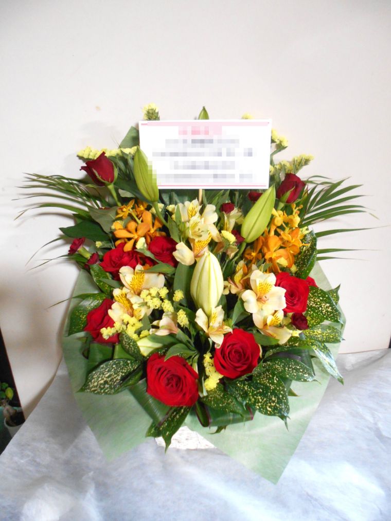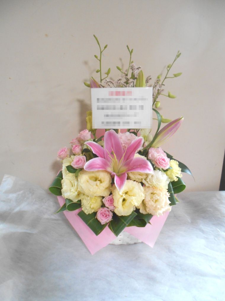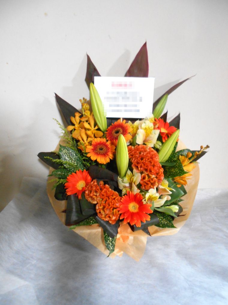 アレンジメントの実際にお届けした写真です。花秘書では発送前に写真をメールで送信致しますので安心して大切な顧客や取引様へのギフトにご利用頂けます。