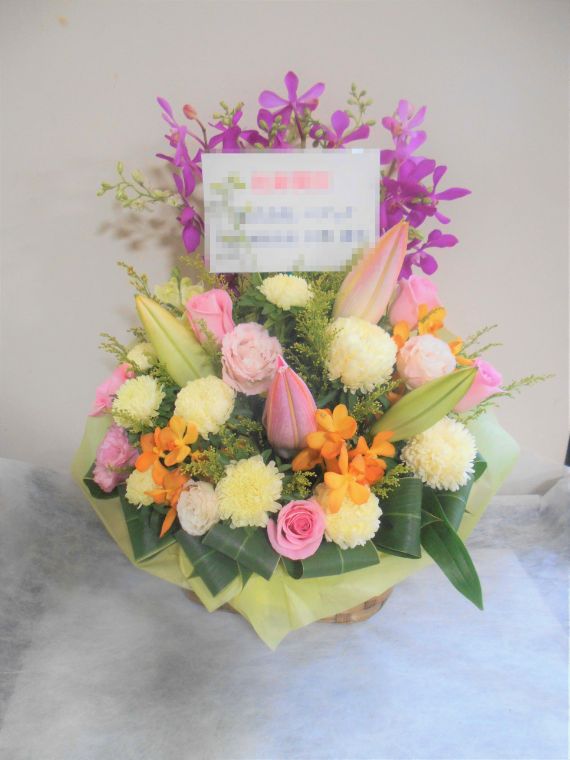 この写真は、実際にお届けさせていただいたアレンジメントです