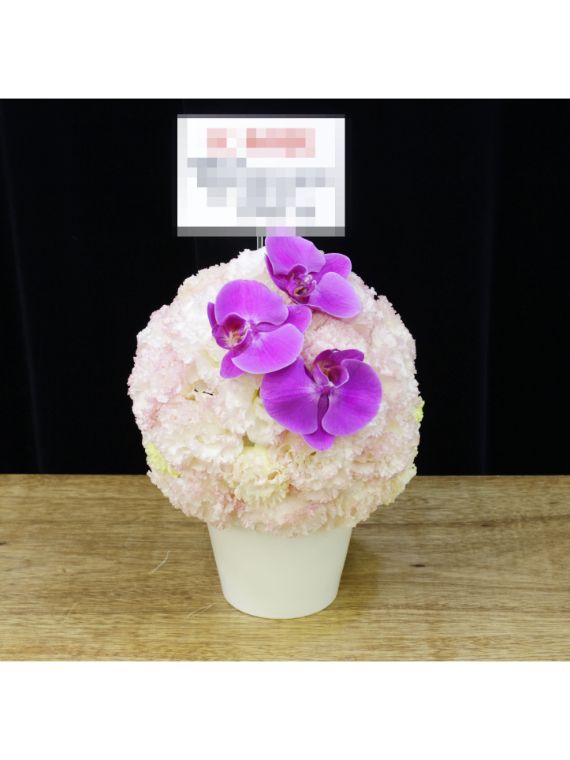 アレンジメントの実際にお届けした写真です。花秘書では発送前に写真をメールで送信致しますので安心して大切な顧客や取引様へのギフトにご利用頂けます。