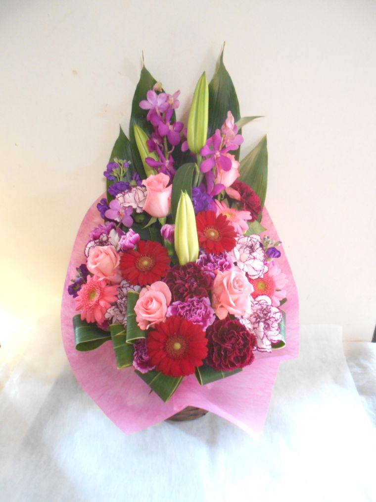 この写真は、実際にお届けさせていただいたアレンジメントです